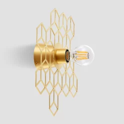 Alexaru on paljon muutakin kuin pelkkä valaisin – se on myös aito sisustuselementti, joka ihastuttaa persoonallisella muotoilullaan. Siro metallinen seinäkiinnike ja ruutumainen rakenne muodostavat yksilöllisen kokonaisuuden, joka tuo huoneeseen ripauksen luksusta. Valaisin sopii sekä kodin oleskelutiloihin että liiketiloihin, kuten design-hotelliin tai trendikkääseen kuppilaan. Trendikäs kennorakenne koristaa seinää myös valaisimen ollessa pois toiminnasta ja pääsee kunnolla oikeuksiinsa vasta, kun valo kytketään toimintaan. Tuloksena on ihana valon ja varjon muodostama kokonaisuus. Valaisimen tyyliin sopivat erinomaisesti LED-pääpeililamput, jotka tuottavat häikäisemättömän valaistuksen ja korostavat valaisimen trendikästä muotoilua erityisen valotehonsa ansiosta. Näin muodostuu kaunis valaistus, joka korostaa tyylikkäästi harjattua, lämpimän messinginväristä pintaa.