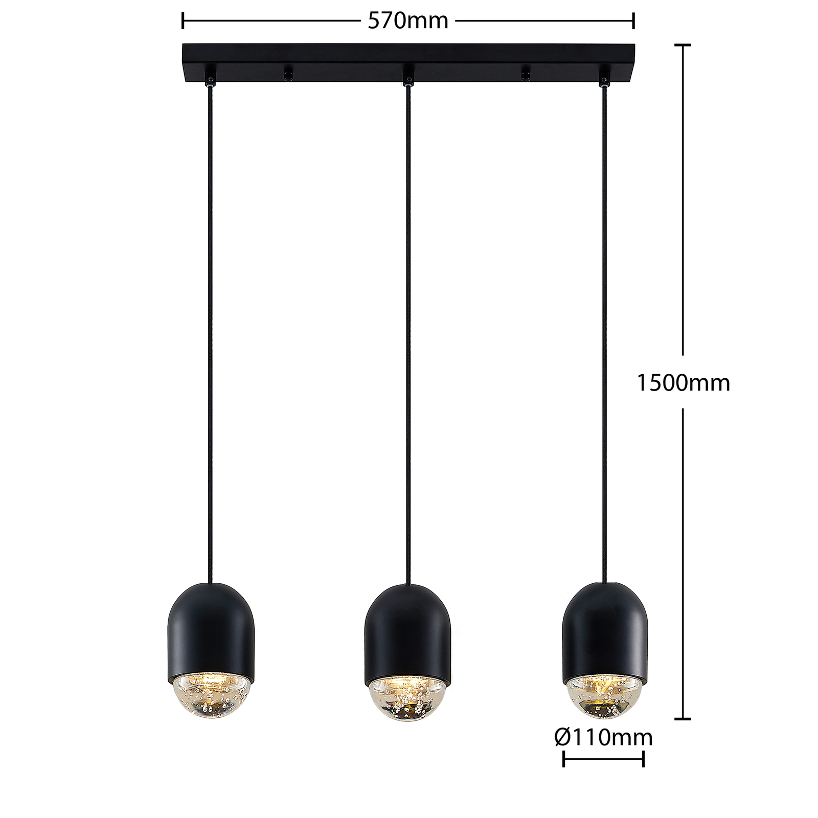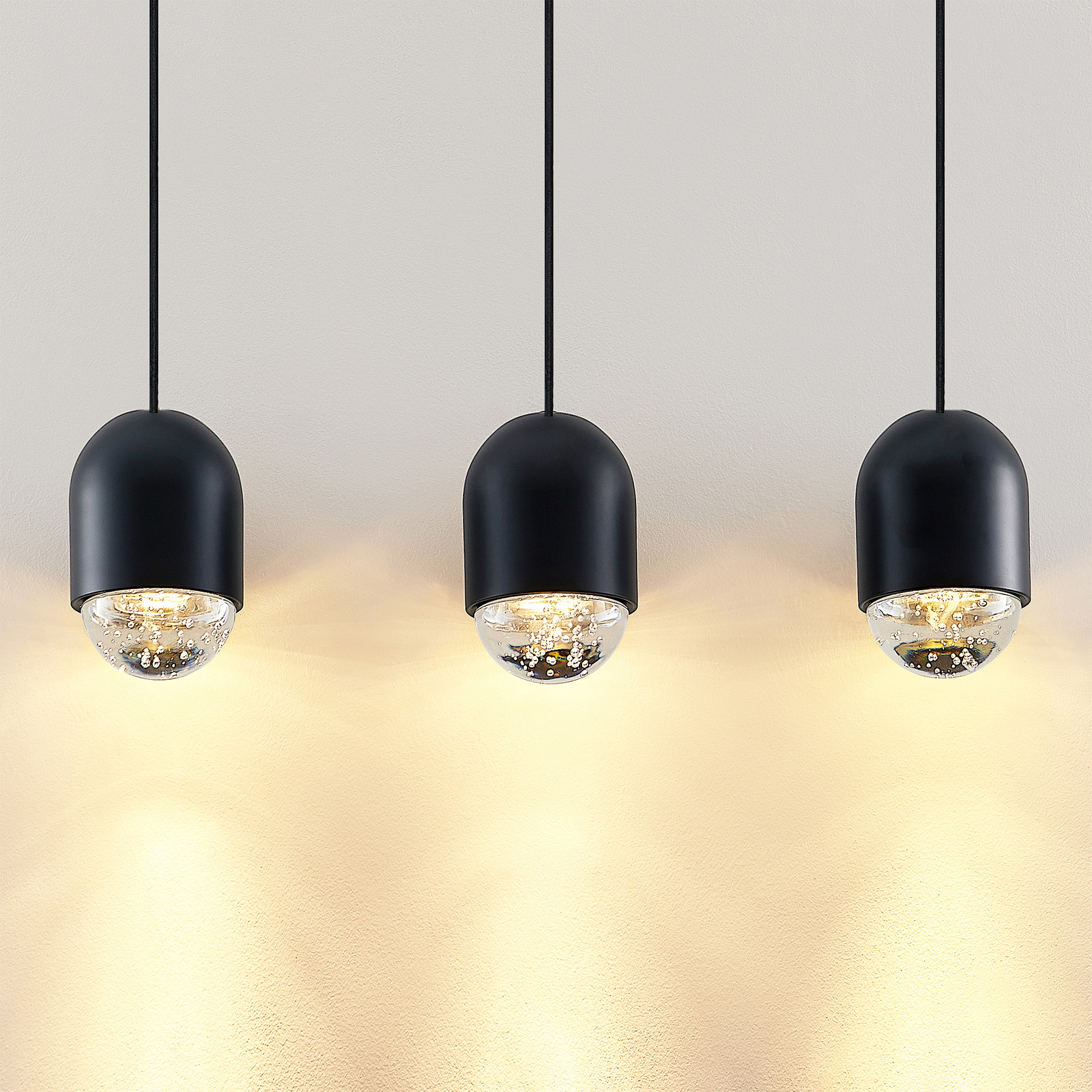 Lucande Amielle -riippuvalo, 3-lamppuinen, Musta