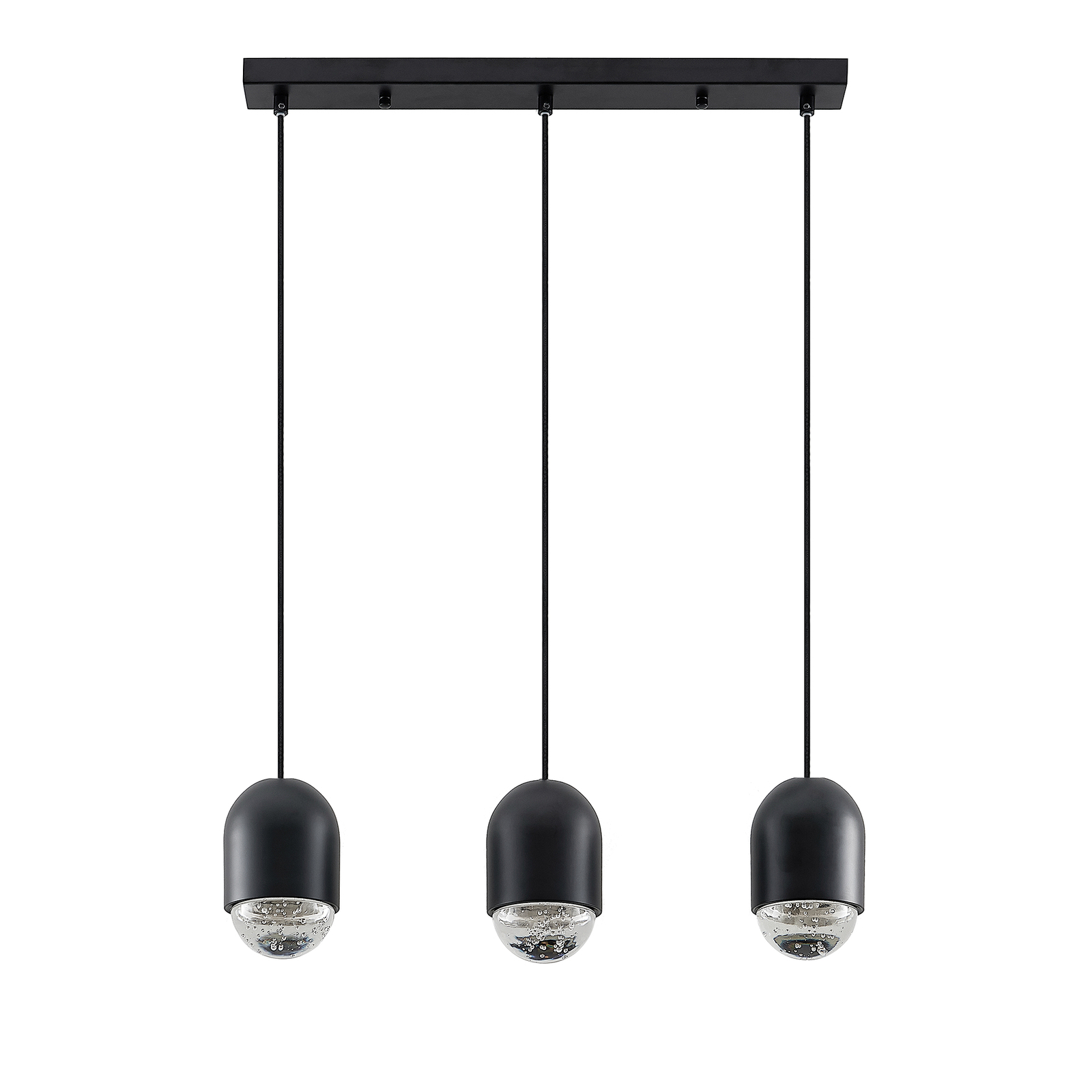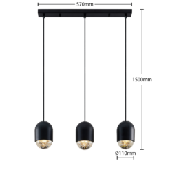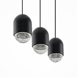 Amielle on erityisen moderni riippuvalo . Kolme sävyä ovat muodoltaan melkein elliptiset ja yläosassa mustasta metallista, kun taas alaosassa ne päättyvät lasista valmistetulla elementillä, jonka sisällä on kuplarakenne. Tämä luo paitsi upean, hyvin nykyaikaisen ilmeen, jolla on puristinen vaikutus, myös ainutlaatuisen valotehosteen, johon liittyy tietty kimallus. Pitkänomainen tangon muoto, jossa on kolme riippuvaa sävyä mustana, tekee Amiellestä upean valonlähteen ruokailutilaan, joka ei ole vain kirkkaasti, vaan myös tyylikkäästi valaistu tällä tyylikkäällä riippuvalaisin.