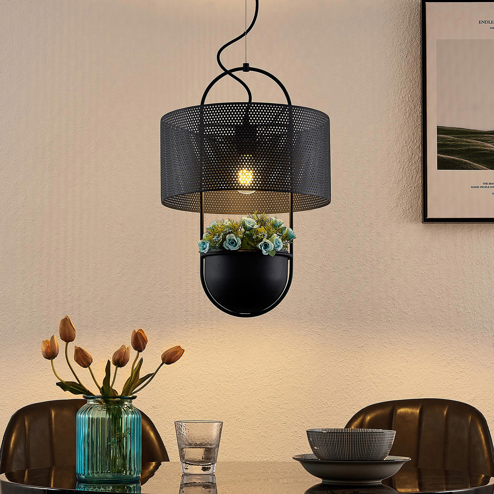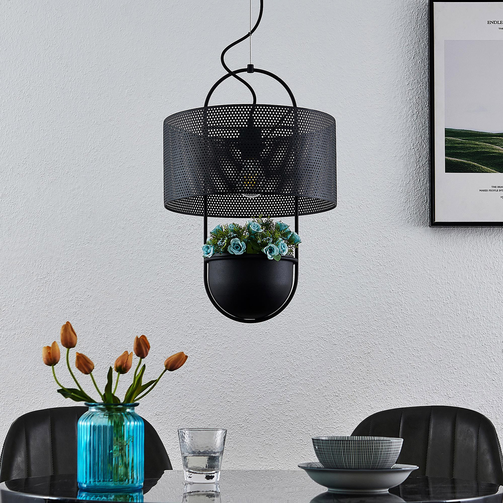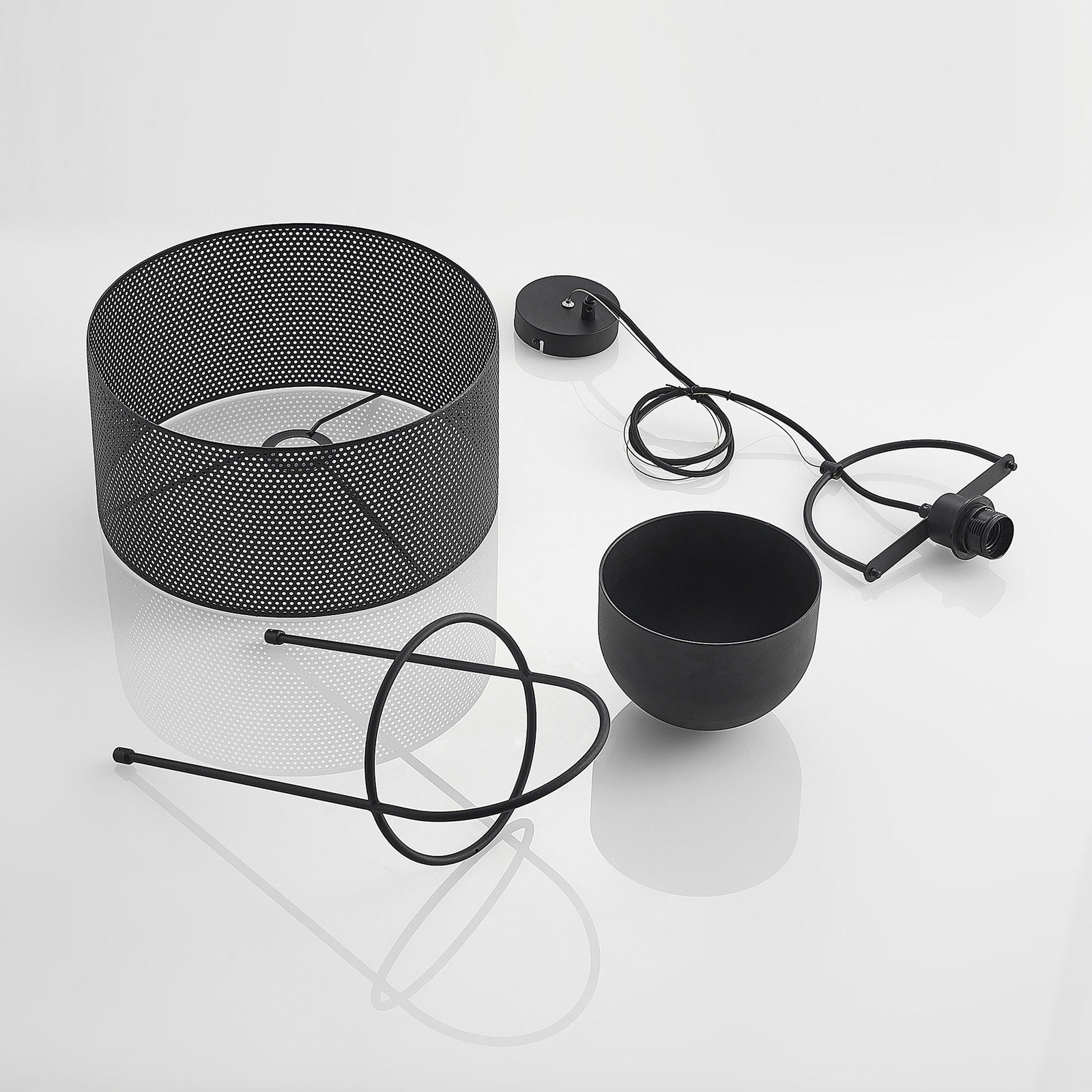 Riippuvalaisin koostuu mustasta ellipsinmuotoisesta metallirungosta, jota ympäröi yläosassa rei’itetty metallinen varjostin, joka on myös musta ja päättyy alareunassa mustasta raudasta valmistettuun kulhoon. Värimaailma on johdonmukainen kauttaaltaan, samoin muotoilu. Puristiset asumistyylit voidaan mukavasti täydentää tällaisella valaisimella, kun taas lampunvarjostin, jossa on monia hienoja reikiä, tarjoaa mielenkiintoisia valohetkiä himmennetyllä efektillä, ja kulho on valmis pitämään muita esineitä, jotka voivat sitten mahdollisesti toimia myös koristeena. Tekstiilikaapeli viimeistelee tehokkaan muotoilun ja tekee Amylee-riippuvalaisimesta tyylikkään valaisimen erilaisiin asuintiloihin
