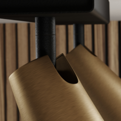 Tyylikäs ja moderni Angelina-kattovalaisin sopii moneen eri sisustustyyliin ja huoneeseen. Valaisin täydentää skandinaavista sisustusta pelkistetyn ja selkeän muotokielensä ansiosta. Valaisimessa on musta kattokiinnike ja kaksi varjostinta, joiden tyylikäs messinginsävyinen mattapinta luo kauniin kontrastin mustalle. Valaistus voidaan säätää optimaaliseksi kääntämällä tai kallistamalla molempia varjostimia.