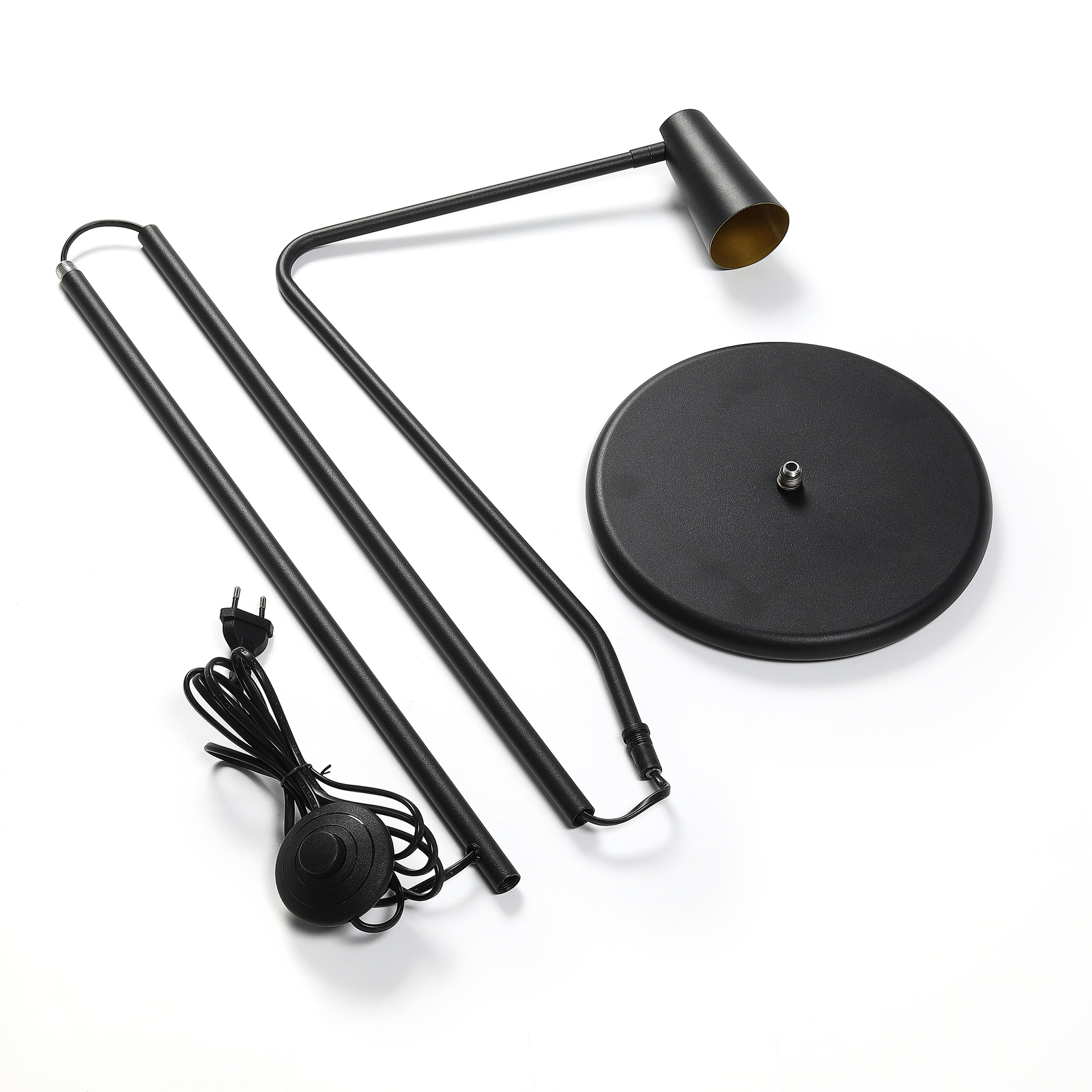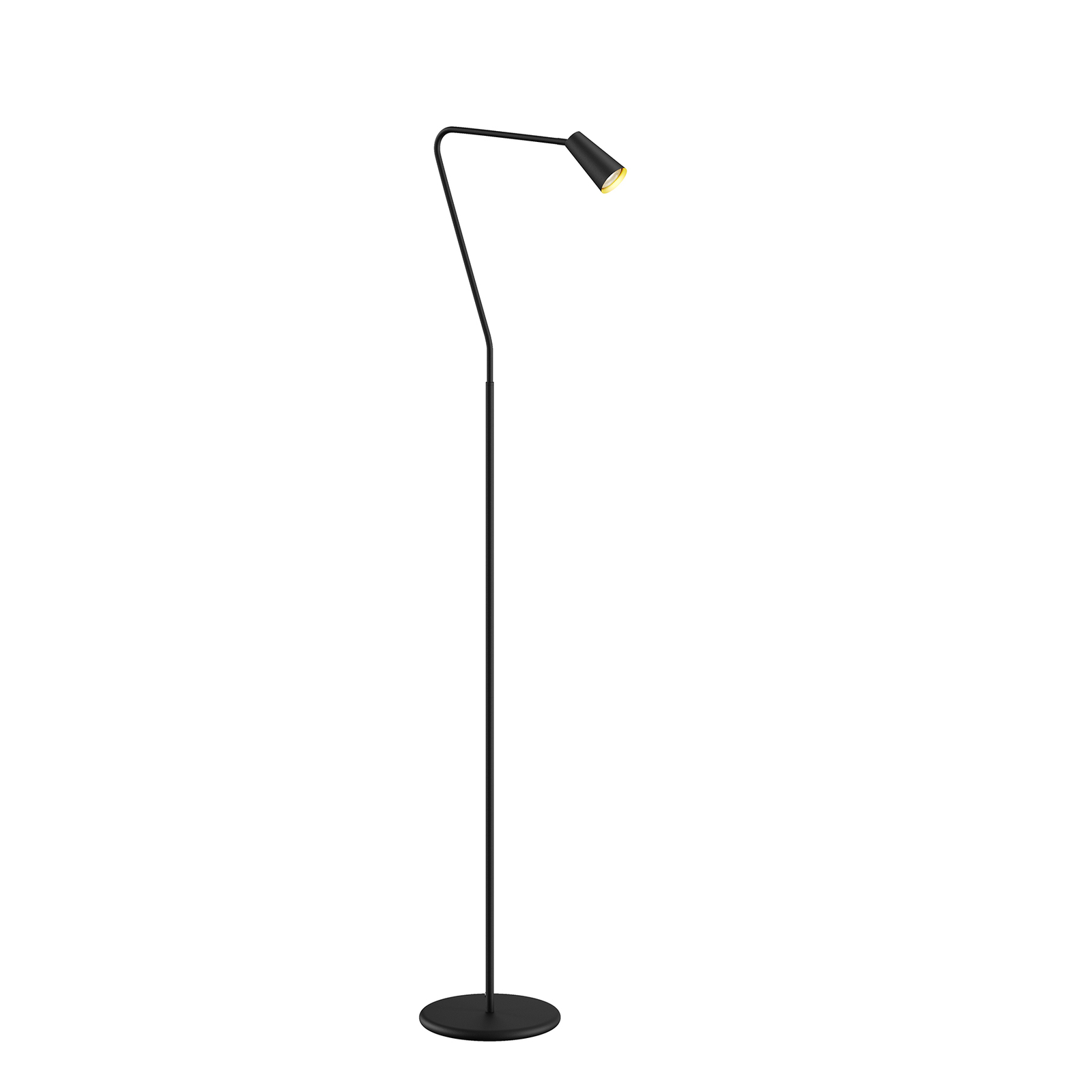 Angelina on moderni ja muotokieleltään selkeä valaisin, jonka tarpeettomat yksityiskohdat on karsittu minimiin. Lattiavalaisin sopii erinomaisesti lukuvaloksi esimerkiksi sohvan viereen mukavia lukuhetkiä varten. Kapeaa metallista valaisinpäätä voidaan kohdistaa haluttuun suuntaan. Varjostimen ulkopuoli on musta, mutta sisäpuoli on kullanvärinen, minkä ansiosta valaisimessa on viihtyisän lämmin valo. Lattiavalaisin sytytetään ja sammutetaan johdossa olevalla jalkakytkimellä. Valaisimeen sopivat GU10-kannan LED-lamput.
