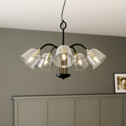 Anjita-riippuvalaisimessa on pyöreä muoto, musta runko ja viisi lasivarjostinta. Kirkkaiden lasivarjostinten sisällä näkyvät messinginväriset lampunpitimet. Nämä elementit muodostavat tyylikkään kolmiosaisen kokonaisuuden, joka sopii hyvin myös vintage-tyyliseen sisustukseen. Tässä korkealaatuisessa design-riippuvalaisimessa yhdistyvät vuosisadanvaihteen eleganssi ja moderni selkeälinjaisuus. Valaisin sopii klassisten linjojensa ja kauniiden yksityiskohtiensa ansiosta hyvin moniin erilaisiin sisustustyyleihin ja täydentää niitä yksilöllisesti.