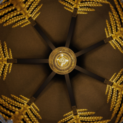 Aparas vakuuttaa eksklusiivisella ulkonäöllään, sillä se on design-riippuvalaisin, joka on suunniteltu laadukkaasti ja jossa erikoinen on etusijalla. Sen lampunvarjostin on yläosastaan pyöreä kuin puolipallo, ja alaosassa sitä koristavat metalliset lehdet, jotka muistuttavat saniaisen lehtiä ja näyttävät levittäytyneiltä. Toisin kuin musta ulkokuori, varjostimen sisäpuoli on sävytetty kultaiseksi, ja se luo olohuoneeseen lämpimän ja kodikkaan valon. Jousitus on tekstiiliverhoiltu, mikä täydentää tyylikkäästi poikkeuksellista ulkonäköä