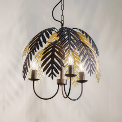 Aparas vakuuttaa eksklusiivisella muotoilullaan, ja varjostimen elementit on mallinnettu saniaislehdistä ja pidetty kokonaan mustana, kun taas sisällä on eräänlainen kattokruunu. Tämä näyttää itsessään hyvin ylevältä ja tyylikkäältä, mutta siitä tulee vielä kauniimpi, kun valonlähteet kytketään päälle, koska silloin syntyy vaikuttava varjon ja valon leikki