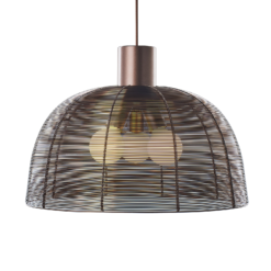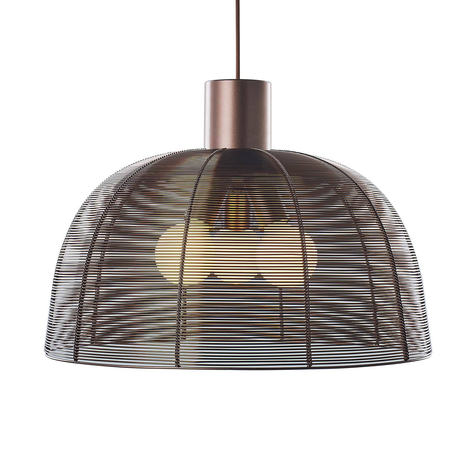 Biljana on erityisen kaunis valonlähde olohuoneeseen ja ruokailutilaan, joka saa aikaan hienon ilmeen. Lampunvarjostin koostuu monista kapeista jousista, ja riippuvalaisin muistuttaa tavallaan häkkiä, sillä hienot langat on valmistettu alumiinista, joka on yhdistetty eräänlaiseksi verkoksi. Valo paistaa monien kapeiden aukkojen läpi ja näyttää siksi erityisen kiiltävältä ja myös hieman kimaltelevalta. Pinta on muotoiltu trendikkääseen ruskeaan sävyyn, ja se erottuu siksi kauniisti joukosta. Lisäksi valo näyttää entistä lämpimämmältä ja kutsuvammalta heijastusten ansiosta. Valitsemalla sopivan valonlähteen voit vaikuttaa ulkonäköön ja valaistustehosteeseen entistä enemmän. Hehkulamput näyttävät aina hyvältä lasipolttimon ja siihen liittyvän hehkulamppuilmeen vuoksi, mutta teknisestä näkökulmasta ne vakuuttavat tehokkaalla LED-tekniikalla ja pitkäikäisyydellä, ja ne ovat saatavana lisävarusteena portaittaisella himmennystekniikalla seinäkytkimen kautta tai erittäin lämpimällä valon värillä, jotta voit luoda erityisen kodikkaan valaistustunnelman