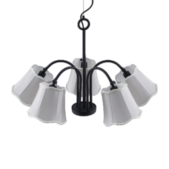 Binta-valaisimessa on viisi jalon hopeanharmaata kangasvarjostinta, jotka on kiinnitetty mustaan, kaarevaan kehykseen ja jotka säteilevät valonsa alaspäin. Näin kukin valonlähde valaisee pöydän pinnan kohdennetusti, kun taas ympäröivä valo on pehmeää ja hajavaloa, jolla on viihtyisä vaikutus. Lampunvarjostimet on muotoiltu hyvin perinteisellä tavalla, ja niiden ylä- ja alapäässä on aallonmuotoinen pääty, jotta voidaan viitata sähkövalon alkuaikoihin, jolloin tämä nykyään nostalgisena pidetty muoto oli aikoinaan hyvin suosittu. Binta-riippuvalaisin on viisivalaisinversiossa tarkoitettu ruokasalin valaistukseen, ja se antaa suhteellisen kirkkaan valon pöydälle menettämättä kuitenkaan sen viihtyisyyttä.