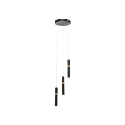 Kolmilamppuinen Bjarko LED-riippuvalaisin mustilla putkilla ja messinkinvärisillä yksityiskohdilla – erittäin tyylikäs asuintiloihin ja gastronomiaanBjarko sopii erinomaisesti pöytävalaisimeksi, koska suurin osa valosta suuntautuu alaspäin ja valaisee pinnan erinomaisesti loistaen kirkkaasti siihen, mutta ympäristön valo on miellyttävää. Sylinterisävyjen keskelle voi myös karata hieman valoa, jolloin saadaan erityisiä korostuksia. Sormus on eräänlainen messinkinen rengas, jossa on koristeellinen uurrettu rakenne. Tämä yksilöllistää muotoilua ja jakaa varjostimen visuaalisesti kahteen osaan. Kaiken kaikkiaan LED-käyttöinen riippuvalaisin näyttää erittäin tyylikkäältä ja sopii hyvin yksityisten asuntojen ruokasaliin tai antaa oikean valon ja sen tietynlaisen lisän nykyaikaisiin ravintoloihin, joissa putkien mustalla pinnalla on silmiinpistävä vaikutus, ja sille on ominaista viileä eleganssi.