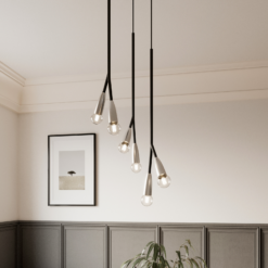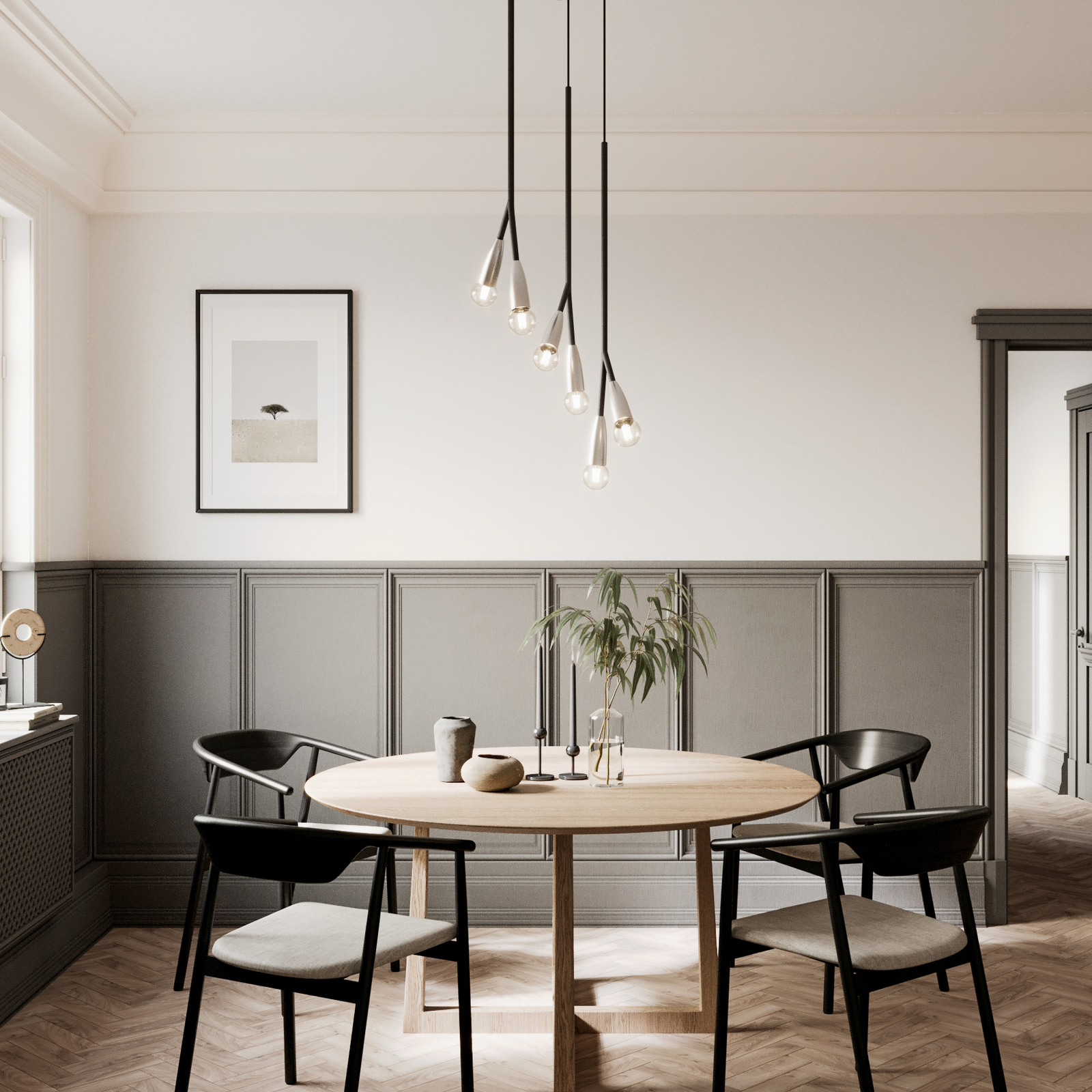 Tyylikäs Carlea-valaisin sopii hyvin moderniin sisustustyyliin – erityisesti ruokailutiloihin. Kuusilamppuinen riippuvalaisin valaisee ruokailualueen kauniisti ja riittävän kirkkaasti. Valaisimessa on kolme abstraktia, puun oksia muistuttavaa elementtiä, joissa kussakin on kaksi E27-lamppua. Lamput ovat osa valaisimen kokonaistyyliä, joten niiden valintaan kannattaa kiinnittää huomiota. Valaisimeen sopivat erittäin hyvin LED-filamenttilamput, jotka muistuttavat ulkoisesti perinteisiä hehkulamppuja mutta ovat paljon kestävämpiä ja energiatehokkaita.