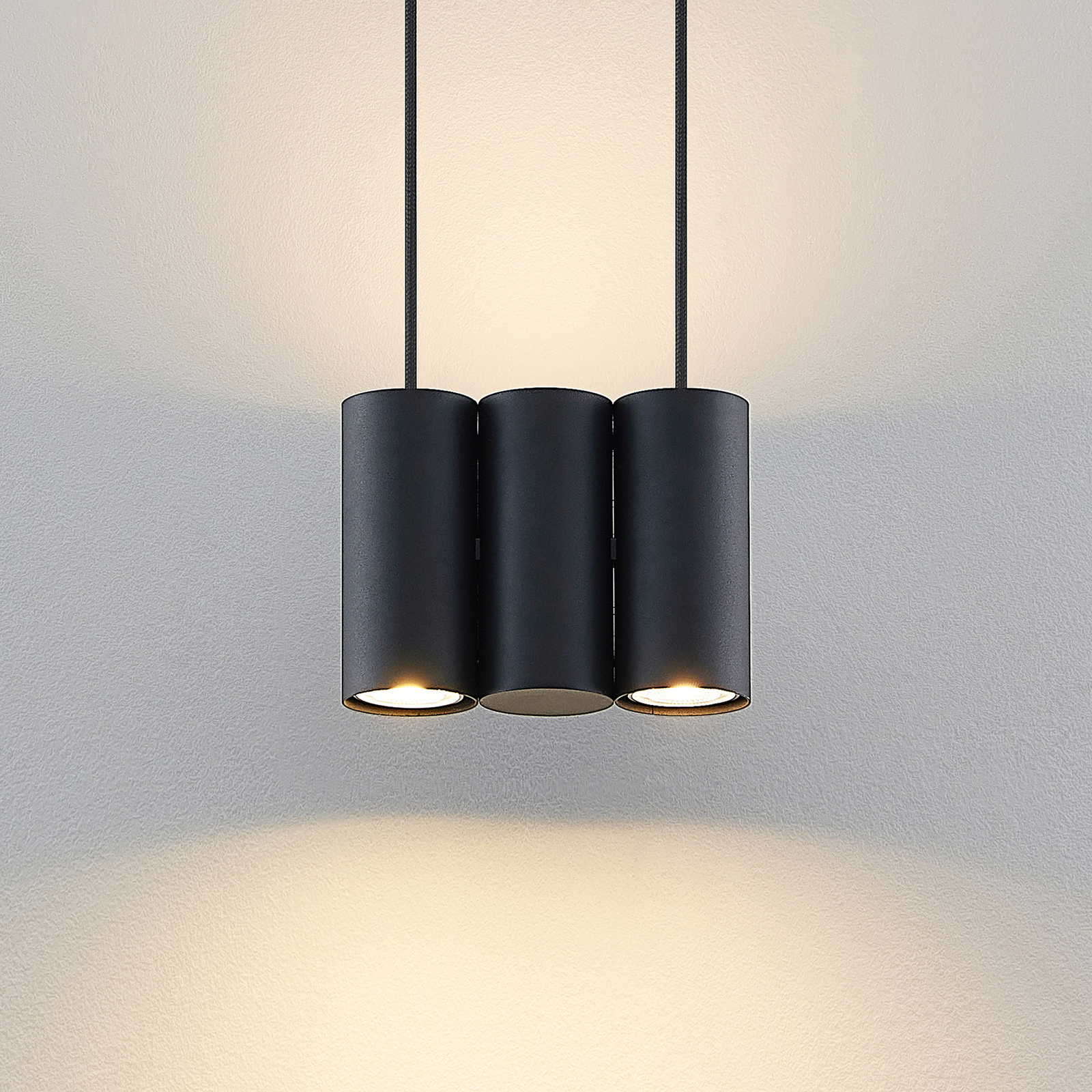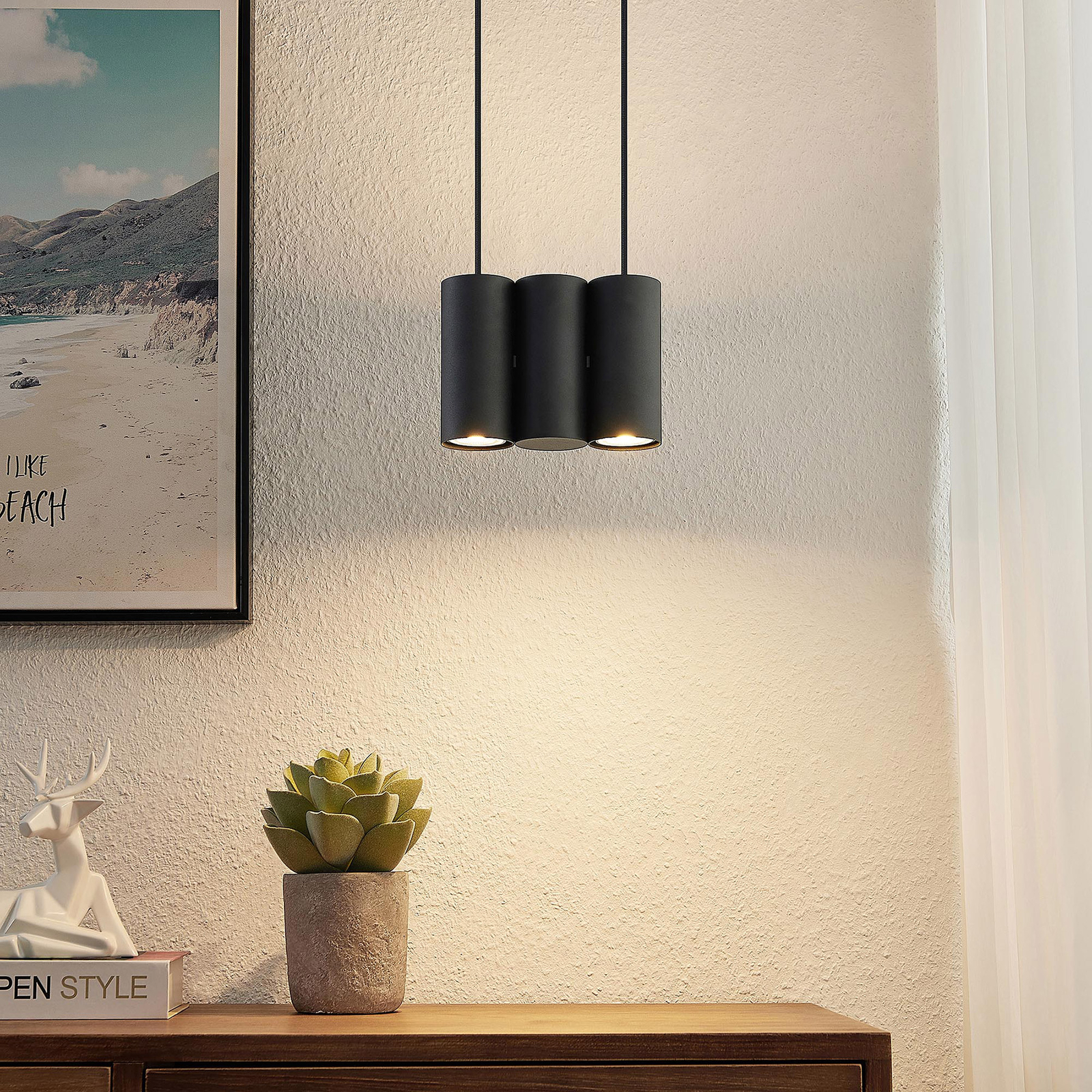 Lucande Cesur -riippuvalo, 3-lamppuinen, Musta