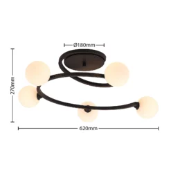 Chenoa on erityinen kattovalaisin, joka pyörii alas kattokiinnike . On yhteensä viisi valaisinvarsi pistettä lampunvarsi, jotka kuuluvat lampunvarjostimet lasista. runko on valmistettu raudasta, joka on päällystetty mustalla pintaviimeistelyllä.