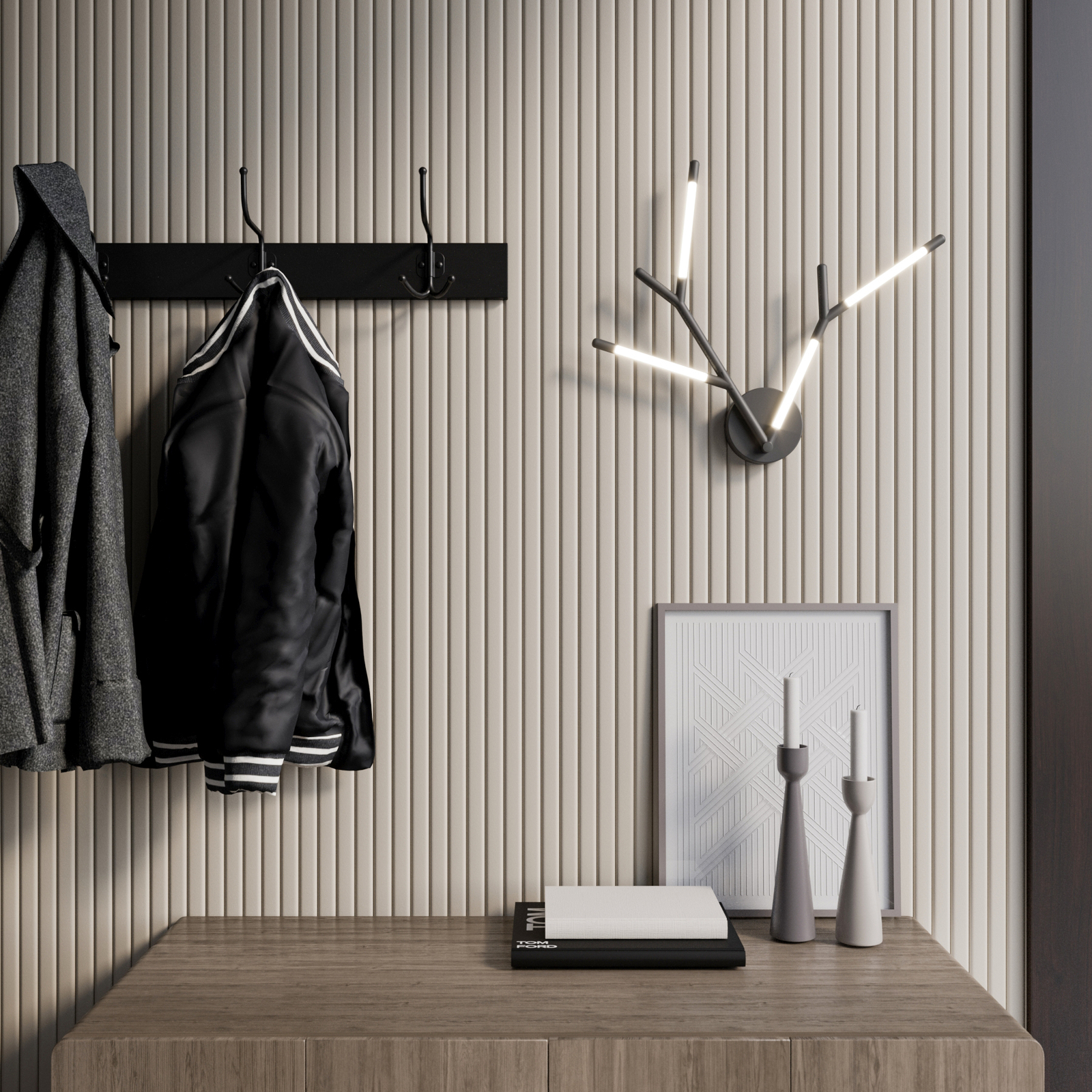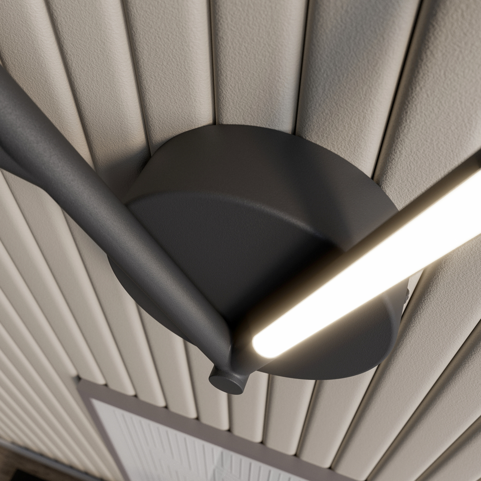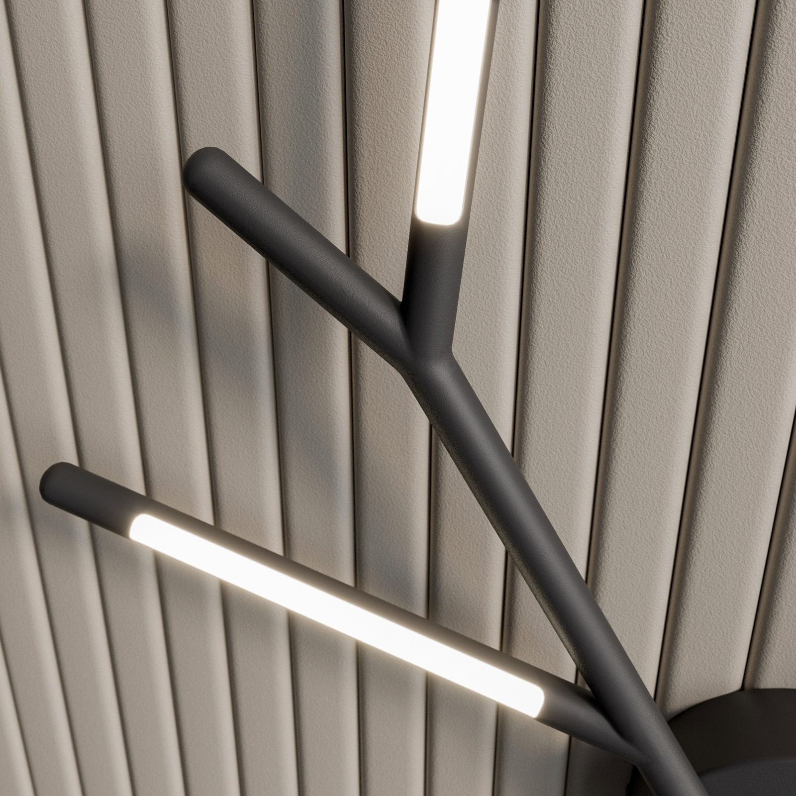 LED-seinävalaisin Cuerno on suunniteltu sarven muotoiseksi. Metalliseinästä valmistettu mattamusta pinta ja polykarbonaatti-seinävalaisin muuttuu ainutlaatuiseksi katseenvangitsijaksi seinälle, se on metsästyspokaalin moderni tulkinta, ja toisin kuin tällainen palkinto, antaa myös valoa.