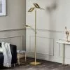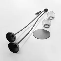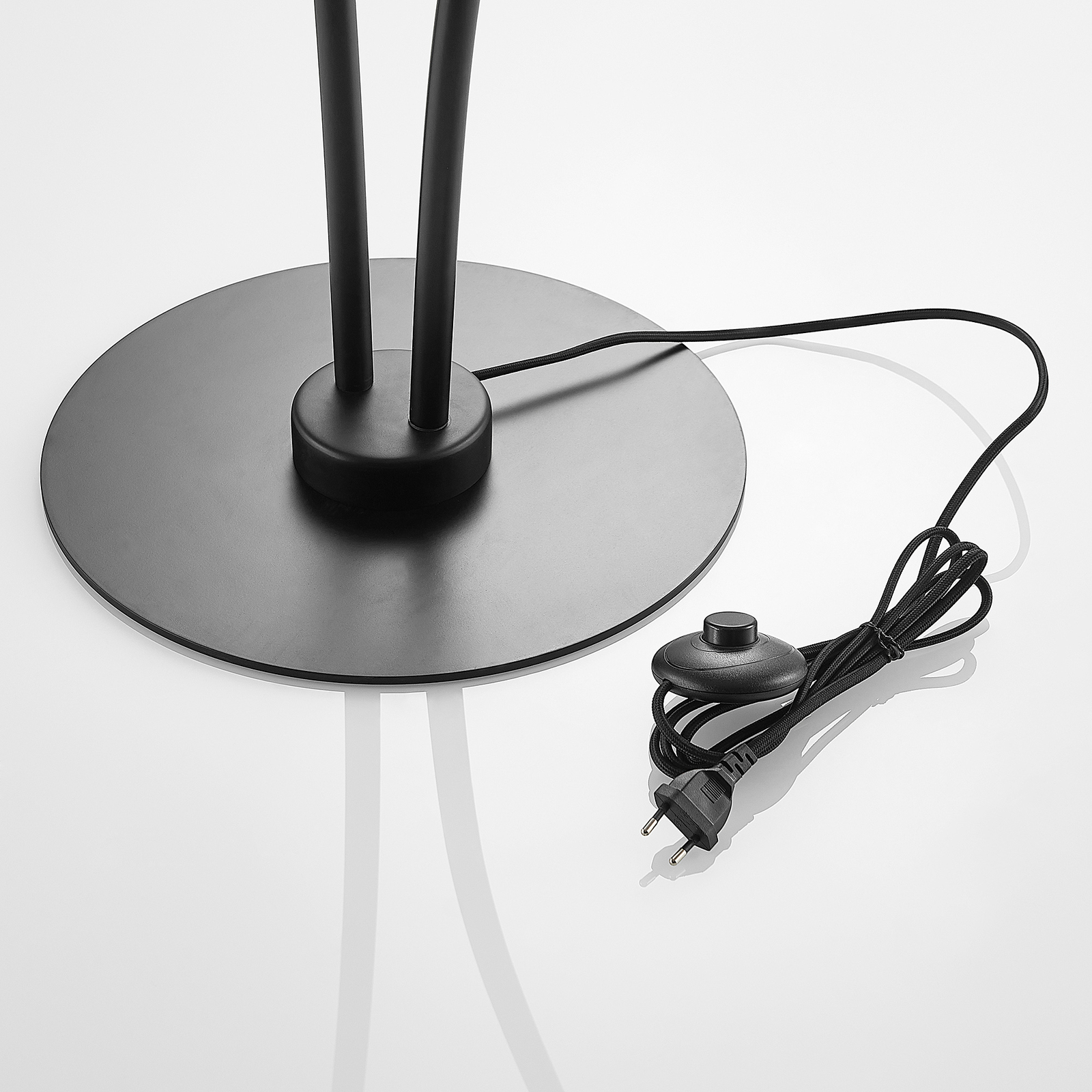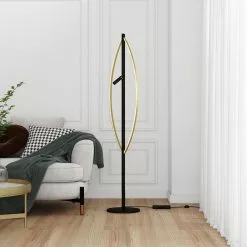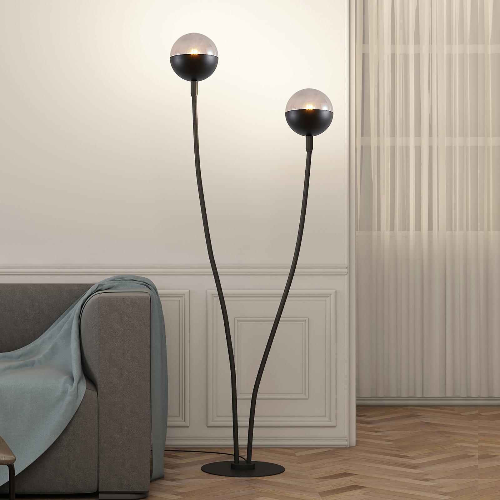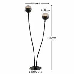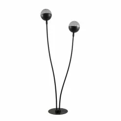 Kaksi kaarevaa valaisinvartta antaa Dustian-lattiavalaisimella dynaamisen ja kepeän ilmeen. Tähän omintakeiseen valaisinsarjaan kuuluu upeasti muotoiltuja valaisimia. Rungossa ja varsissa on trendikäs mattamusta pinta, jolle lämpimästi valaisevat lamput luovat kauniin kontrastin. Tyylikkäät, pyörät varjostimet ovat puoliksi mustaa metallia ja puoliksi kirkasta lasia. Lattiavalaisin toimii tyylikkään muotoilunsa ansiosta kauniina sisustuksen katseenvangitsijana.