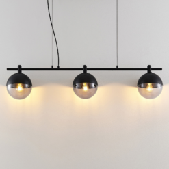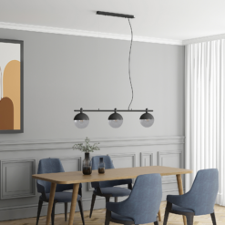 Design-tyylinen Dustian-valaisin sopii hyvin ruokailuhuoneeseen, jossa se valaisee pöytäpinnan kirkkaasti ja kohdistetusti. Valaisimen persoonallista muotoilua korostavat musta väri ja kirkas lasi. Riippuvalaisin erottuu edukseen dynaamisen ja kepeän muotokielensä ansiosta. Trendikästä mustaa pintaa täydentää hienosti LED-filamenttilamppujen lämmin valoväri, joka muodostaa viileän pinnan ja lämpimän valon välisen tyylikkään kontrastin. Valaisin luo kotiin miellyttävän tunnelman.