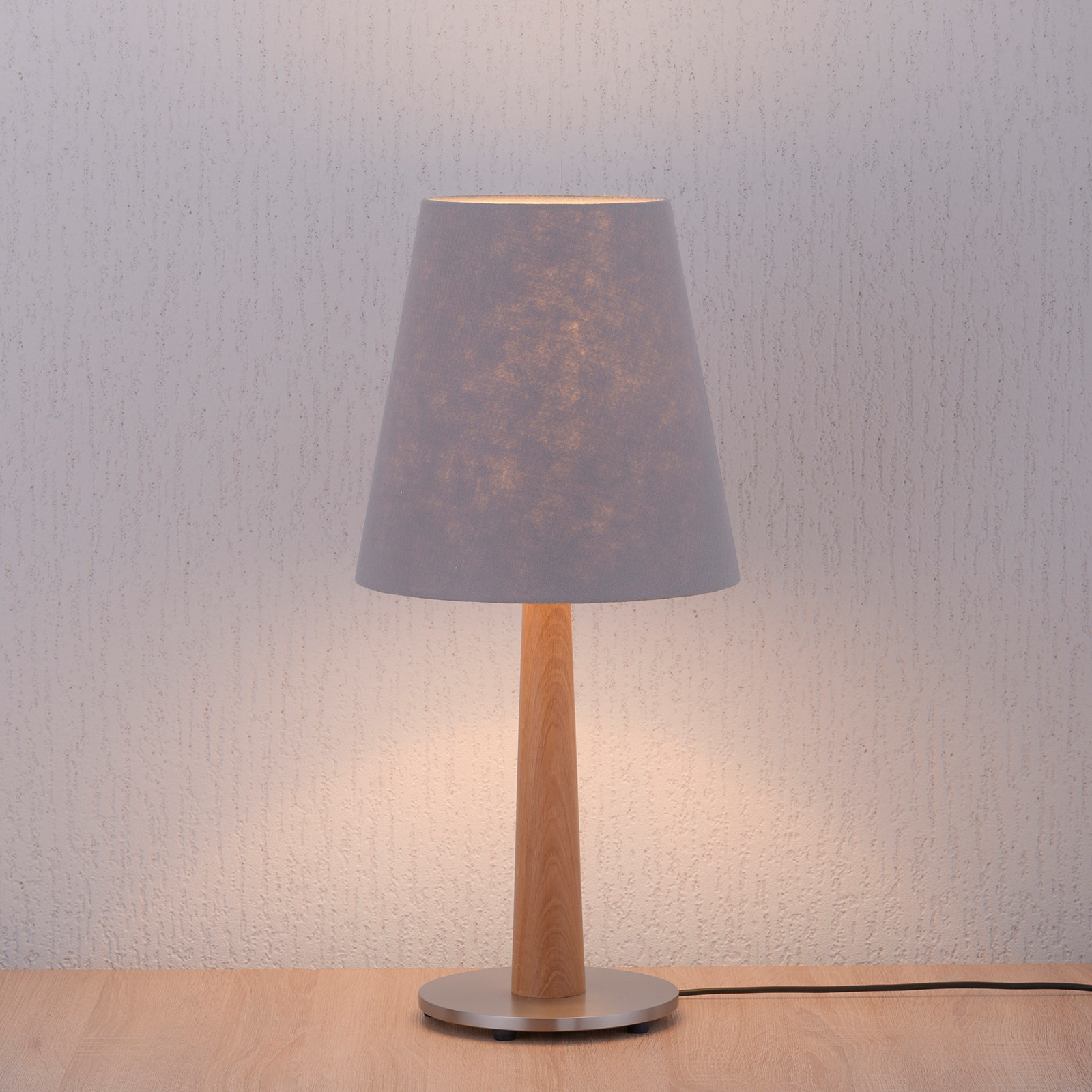 Valaisimen korkealaatuinen puinen jalka on työstetty käsin. Valaisin on valmistettu Saksassa. Tällä korkealaatuisella tuotteella on pitkä käyttöikä. Pöytävalaisin on ajattoman muotoilunsa ansiosta monikäyttöinen, joten se sopii moniin eri sisustustyyleihin.