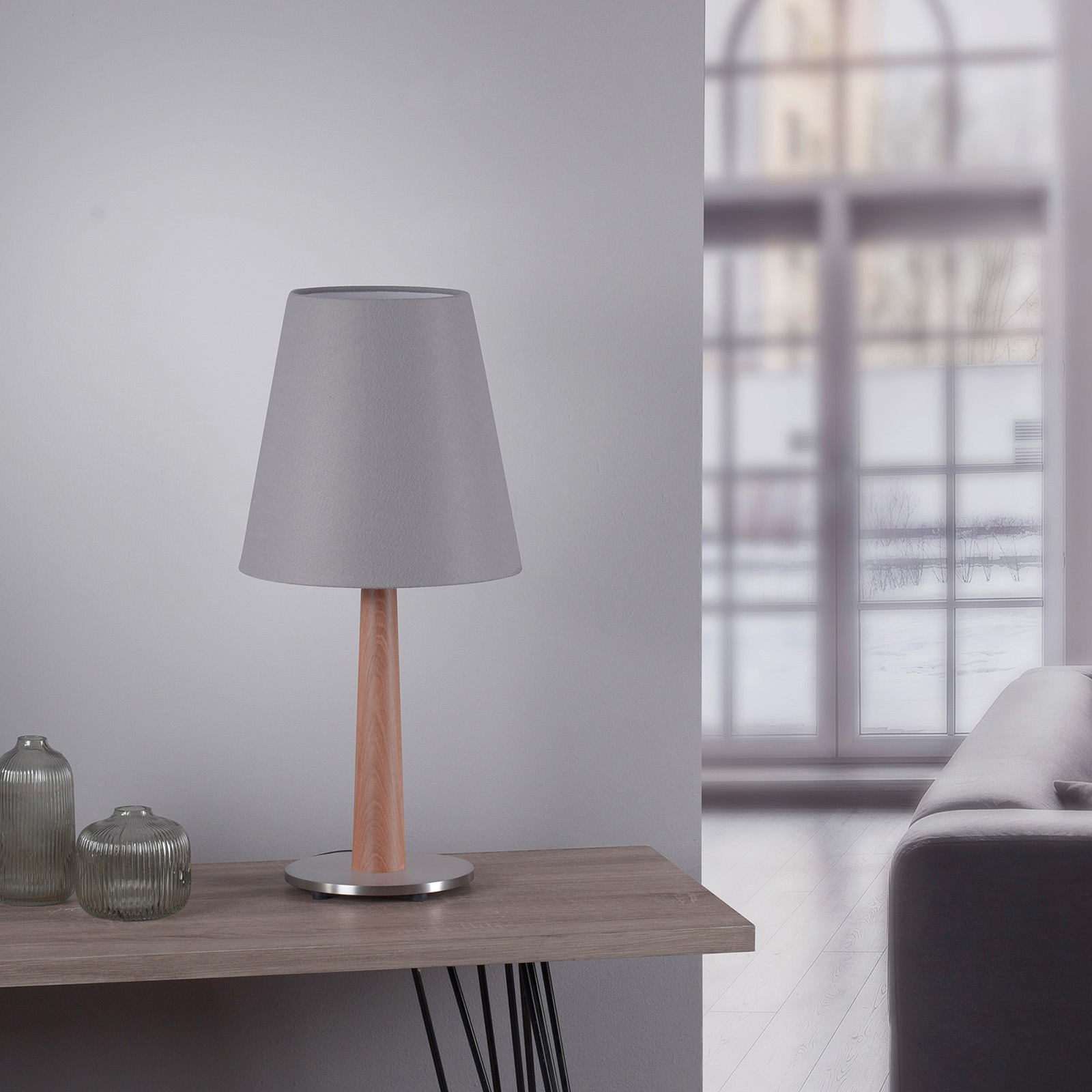 Geometrinen valaisin on kartionmuotoinen. Tyylikkäässä Elif-pöytävalaisimessa on kartionmuotoinen huopavarjostin ja tammipuinen jalka. Täydellisesti yhteensopivat varjostin ja jalka muodostavan kauniin kokonaisuuden.