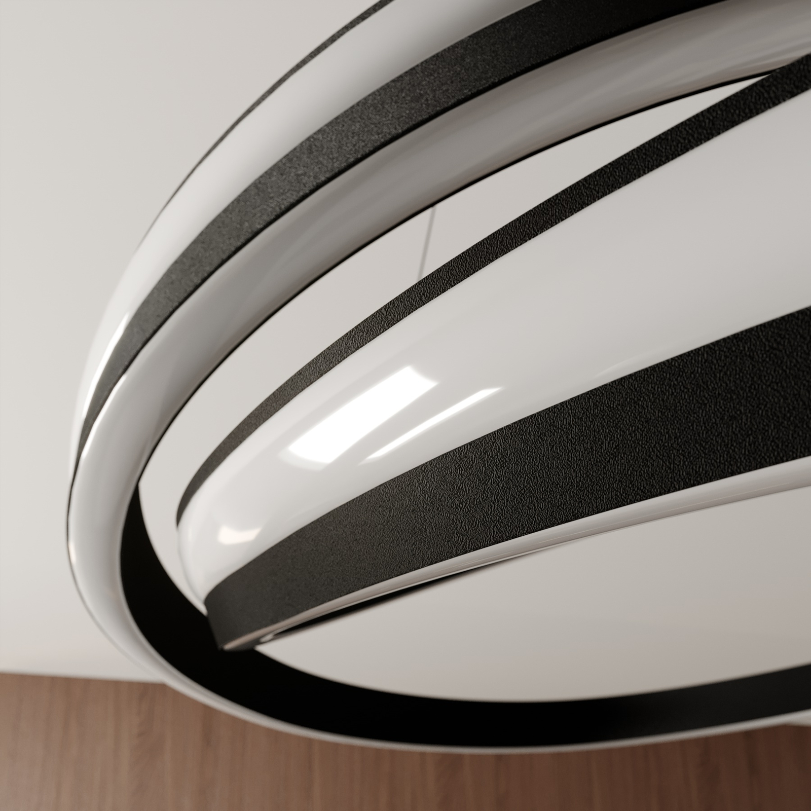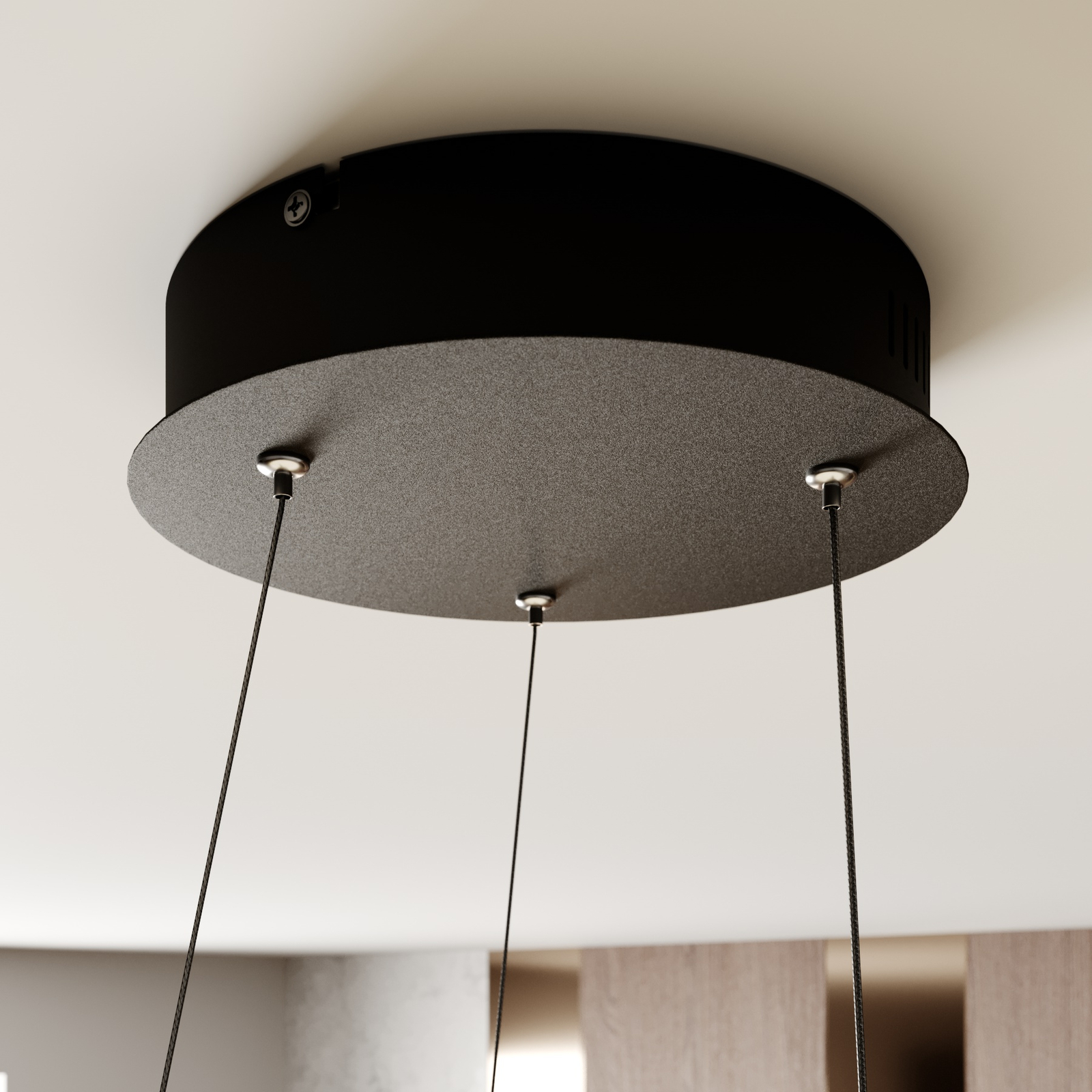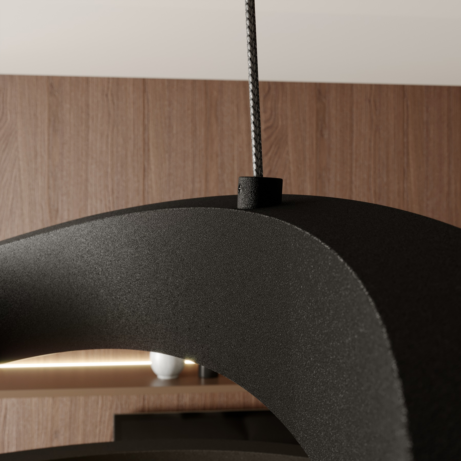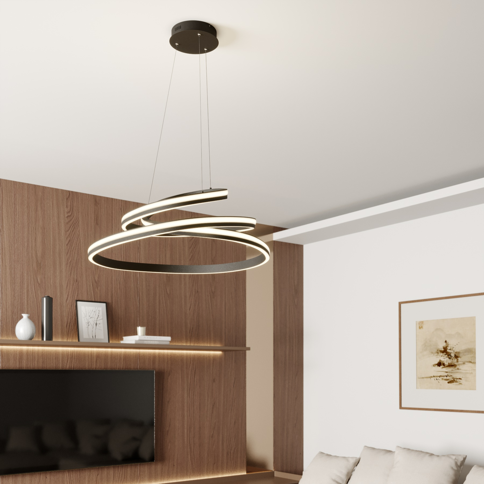 Emlyn-LED-riippuvalaisimen varjostin näyttää lähes leijuvan ilmassa, koska varjostimeen kiinnitetyt varjostimet ovat erittäin ohuet ja siten lähes näkymättömät. Varjostimessa on kierremäinen muotoilu. LEDien valkoinen silikonisuojus täydentää kauniisti satinoitua mustaa metallipintaa. Tämä valaisin sopii hyvin moderniin sisustukseen. Valaisimessa on kolmiportainen (100, 50 ja 10 %) kirkkauden säätö, jota käytetään tavallisella seinäkatkaisijalla.