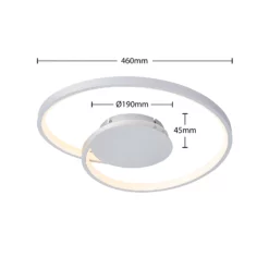 Enesa LED-kattovalaisin on tyylikäs ja käytännöllinen luonne. Pyöreästä kattokiinnike nousee kapea tukijalka, joka liikkuu kerran ympyrässä ja luo siten houkuttelevan kuvion. Pysyvästi asennetut LEDit kulkevat näiden tukien varrella, jotka voidaan himmentää kirkkauden suhteen seinäkytkimen avulla. Nelitasoisen himmennystekniikan ja säännöllisen virrankatkaisutoiminnon avulla valaisin voidaan himmentää 100%, 60%, 30% ja 13% sen kirkkaudesta ja kytkeä päälle ja pois päältä tavalliseen tapaan. Tämä tapahtuu painamalla seinäkytkintä useita kertoja. Enesa LED-kattovalaisin moderni muotoilu asettaa tyylikkäät korostukset huoneiston kattoihin ja leikkaa erityisen hyvän kuvan olohuoneessa tai makuuhuoneessa.