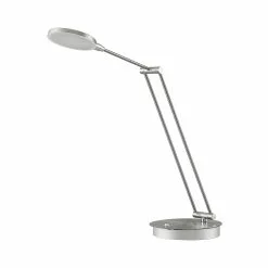 Ensley LED-pöytävalaisin sopii erinomaisesti työpöydän valaistukseen. Se on valmistettu raudasta ja ruostumattomasta teräksestä, ja sen muotoilua täydentää nikkelin värinen pinta. Sen pienikokoinen lampunvarjostin on varustettu kiinteästi asennetuilla LED-valoilla, joita voidaan himmentää kosketushimmentimen avulla ja joiden valon väri vaihtuu jatkuvasti lämpimän valkoisesta päivänvaloon. Näin LED-pöytävalaisin Ensley voi aina tarjota oikean valon voimakkuuden ja värin ja mukauttaa valaistuksensa päivän aikana muuttuviin valo-olosuhteisiin. Ensleyn melko yksinkertainen ulkonäkö sulautuu helposti sisustustyyliin ja muihin huonekaluihin.