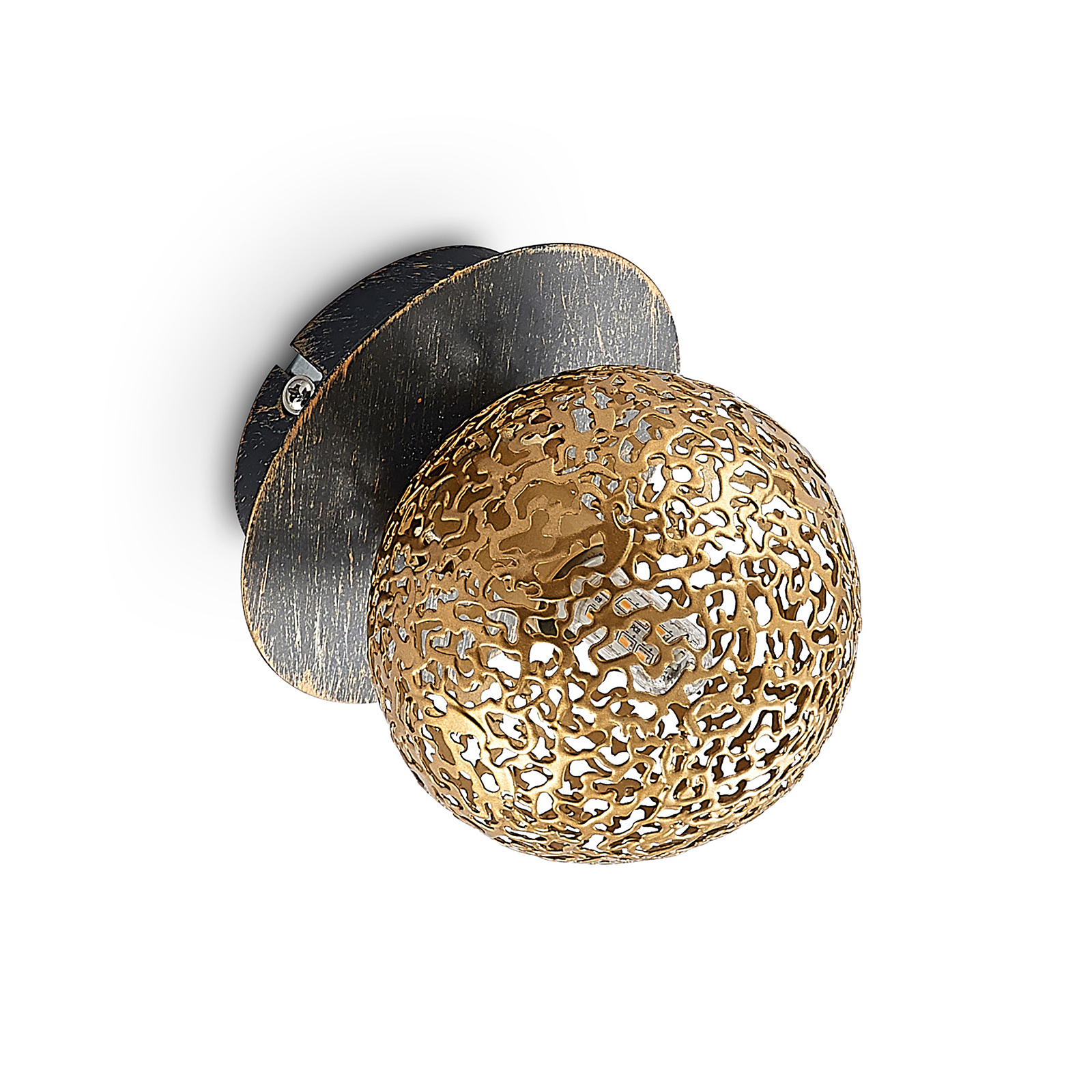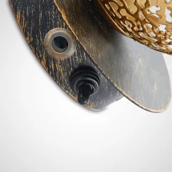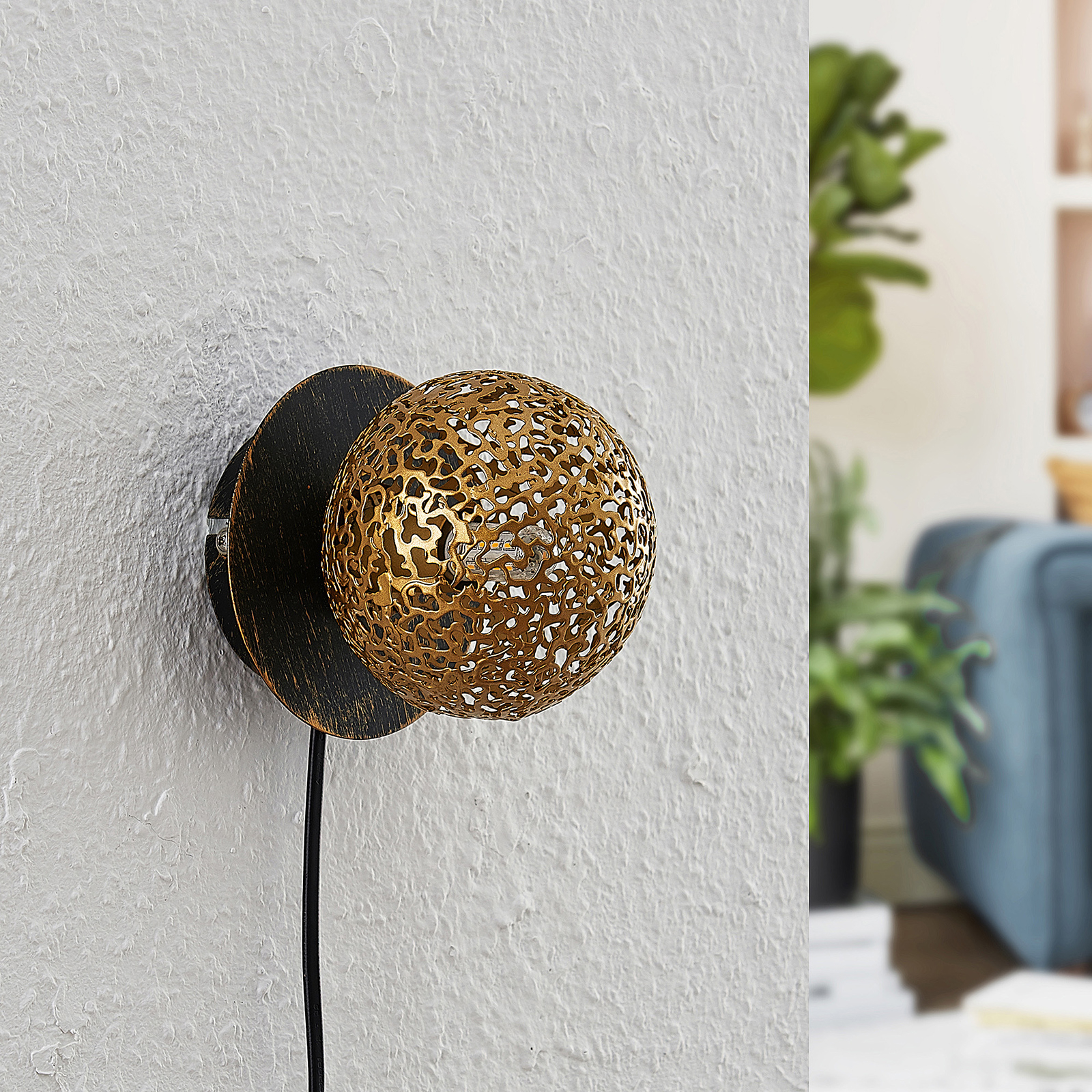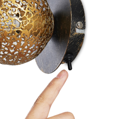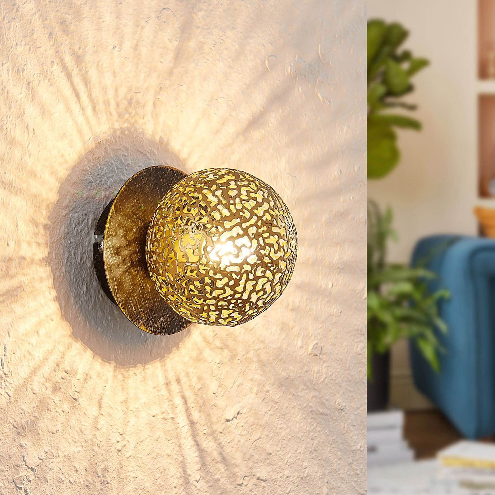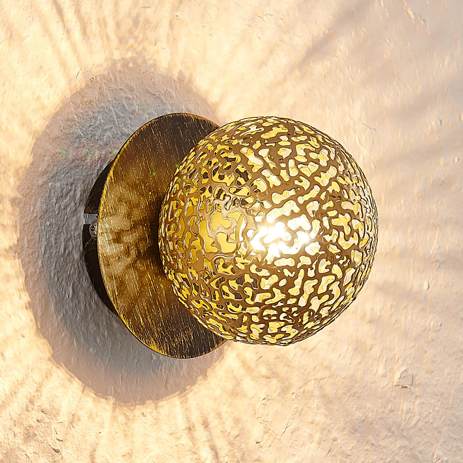 Evory-seinävalaisin tekee vaikutuksen pyöreän sävynsä ansiosta kauniilla kuvioinnilla. varjostin on valmistettu raudasta ja on maalattu kultaisella sävyllä. Sen tekee erikoiseksi kuvio. Tämä tekee lampusta näyttävän marokkolaiselta ja täydentää täydellisesti asuntoa, jolla on samanlaiset sisustuselementit.