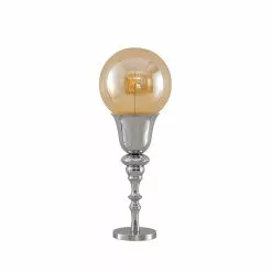 Gesja-pöytävalaisin ilman varjostinta osaa vakuuttaa erityisen yksilöllisellä ilmaisullaan, sillä se on barokkisen kaarevasti muotoiltu pikari, jossa yhdistyvät nostalginen aura ja tietty nykyaikaisuus, sillä pinnassa on kaunis kromattu kiiltävä viimeistely. Tämä kontrastien leikki tekee Gesja-pöytävalaisimesta houkuttelevan valonlähteen erityisiin oleskelutiloihin. Tyylikkään ilmeen täydentämiseksi olisi valittava G125-lasivalaisin, joka on huomattavan näkyvä suurten mittojensa ansiosta ja täydentää muotoilun täydellisesti. Vastaava valonlähde voidaan tilata erikseen lisävarusteiden kautta.