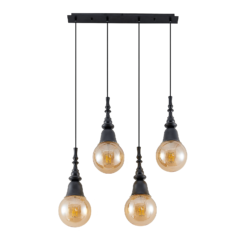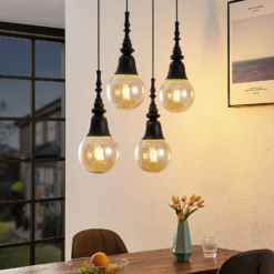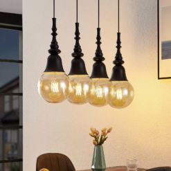 Lucande Gesja-riippuvalo 4-lamppuinen, Pitkä Musta
