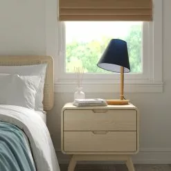 Tälle pöytävalaisimelle on ominaista toisaalta selkeä, perinteinen muotoilukieli, mutta toisaalta myös epätavalliset yksityiskohdat. Esimerkiksi on kiiltävä kromirengas, joka pitää mustaa tekstiilikaapelia ja johtaa varjostin pohjaan. Hieman kääntyvä varjostin estää ympäröivän valaistus varovasti ja antaa valon poistua kohdennetummin alaspäin, mikä luo erittäin kodikkaan valaistuksen asuin- ja makuutiloille. varjostin, joka ei tosin ole kovin yleinen, tulee pöytälampun erityinen katseenvangitsija ja se koostuu hienosta kankaasta, kun taas runko on valmistettu korkealaatuisesta puusta, ja se on kauniisti käsitelty ja korostaa yleisen ilmeen luonnollisuutta. Voisit melkein ajatella, että tämä lamppu on uudelleentulkinta skandinaavisesta mukavuudesta!
