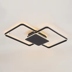 Musta kattovalaisin Kadira on kaunis lisä modernisti sisustettuihin tiloihin. Suorakulmaiset kehykset, joissa on LED-valoja, muodostavat yhdessä tyylikkään valonlähteen. Yleisen seinäkytkimen avulla valaisin voidaan kytkeä päälle ja pois päältä tavalliseen tapaan. Integroidulla sammutustoiminnolla varustetun kolmiportaisen himmennystekniikan ansiosta se voidaan myös himmentää kolmelle eri kirkkaustasolle painamalla kytkintä useita kertoja: 100 %, 40 % ja 15 %.
