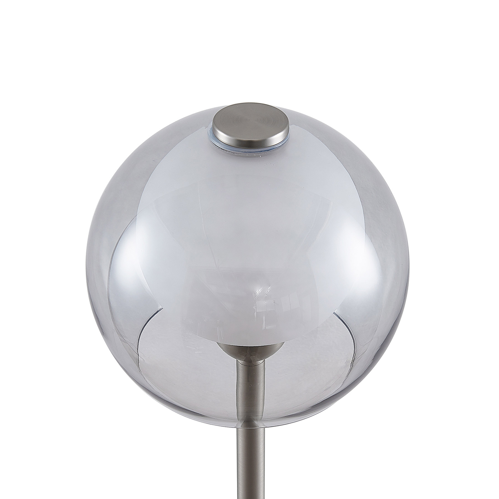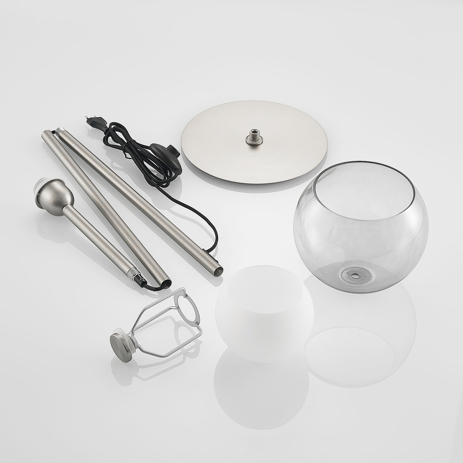Kaiya on täydellinen kumppani, kun haluat lukea kirjoja sohvalla iltaisin. Ohut lattiavalaisin on valmistettu raudasta, ja se koostuu pyöreästä jalustasta ja ohuesta jalasta, jonka pinta on modernin nikkelin värinen. Yläosassa on kahdesta lasipuolikkaasta valmistettu lampunvarjostin, jonka valkoinen ja savunharmaa väritys luovat viehättävän värikontrastin. Kaiya-lattiavalaisin voidaan varustaa sopivilla valaisimilla, ja se voidaan kytkeä helposti päälle ja pois päältä kaapelikytkimen avulla. Sen tyylikäs ulkonäkö sulautuu vaivattomasti muuhun kalustukseen varjostamatta sitä.