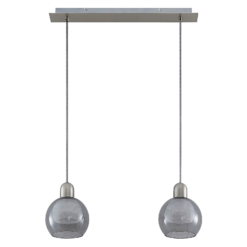 Riippuvalaisimessa Kaiya on kaksi erityistä lampunvarjostinta, jotka molemmat koostuvat kahdesta lasista valmistetusta puolipallosta. Sävyjen väri on viehättävä kontrasti valkoista ja savunharmaata. Ne voidaan varustaa asianmukaisilla valaisimilla, joiden valo on miellyttävästi himmeä. Valaisimen kattovalaisin on valmistettu raudasta, ja sen pinta on väriltään harmonista nikkeliä, mikä antaa sille modernin viimeistelyn. Kaiya-riippuvalaisin sopii täydellisesti olohuoneeseen tai ruokailuhuoneeseen ja korostaa sisustusta hienovaraisesti.