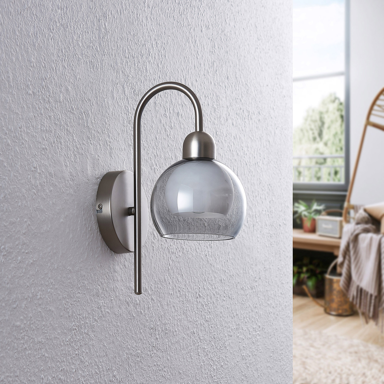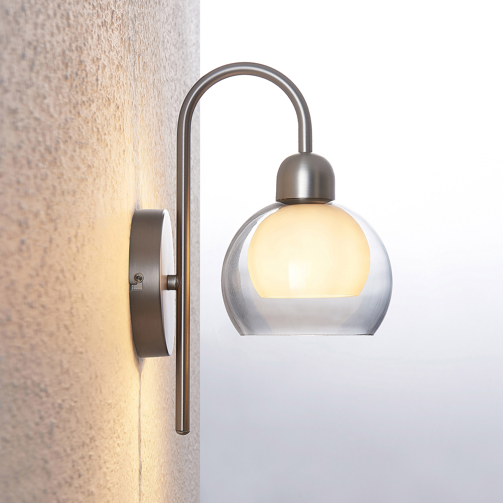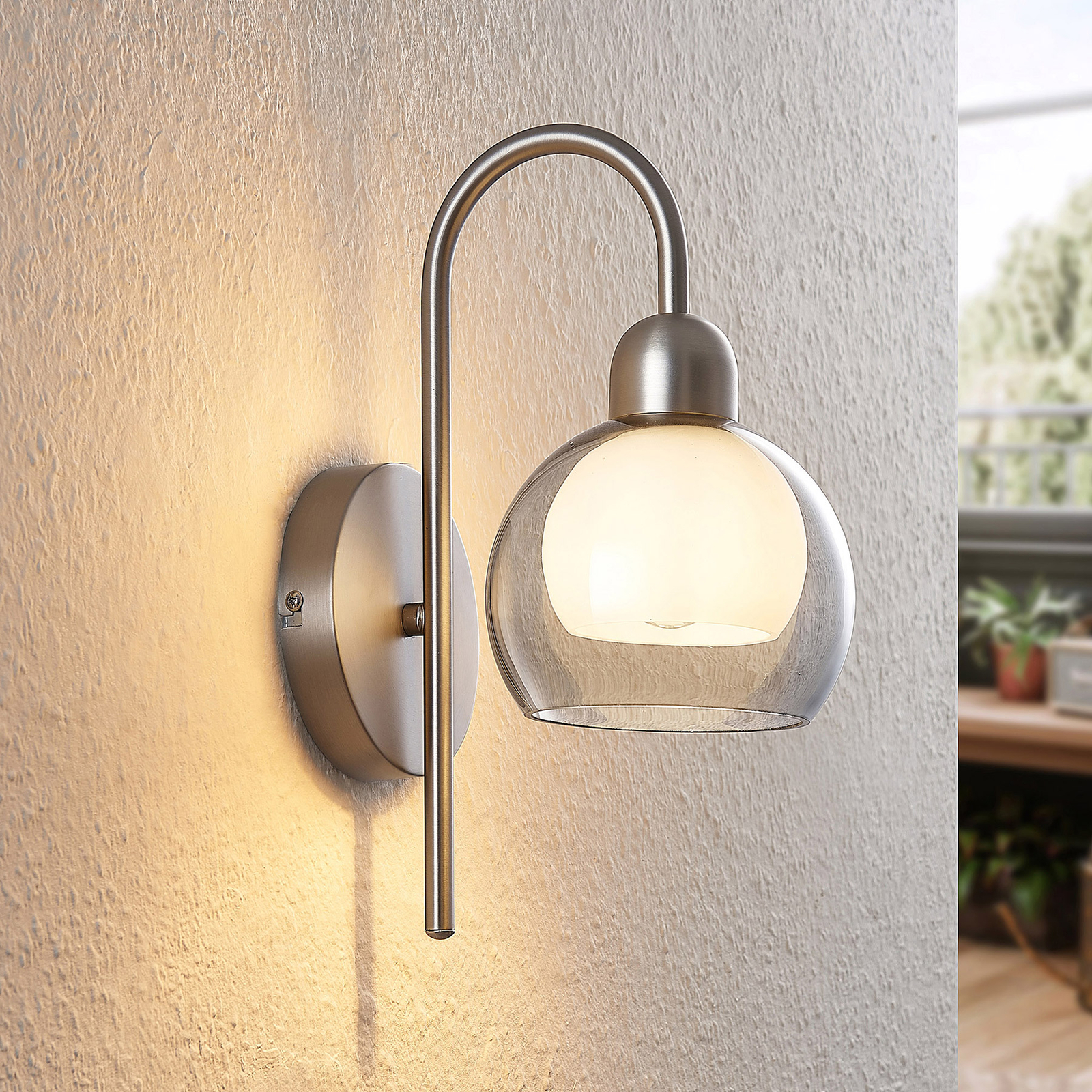 Lucande Kaiya -seinälamppu, Lasivarjostin, Kaareva