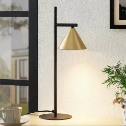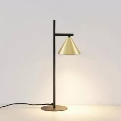 Tyylikäs Kartio-pöytävalaisin saa aikaan pienennetyn, mutta silti erittäin vankan muodon ja jalon ilmeen. Valmistettu tukeva rautaa, lamppu koostuu suorasta, filigraanityö runko ja kartiomainen varjostin. Lamppua ympäröi tyylikäs värikontrasti, koska musta runko sopii hyvin harmonisesti messinkipintaisen varjostin kanssa. Lampun korkealaatuista luonnetta korostaa myös metallipinnan hieno ammattitaito.