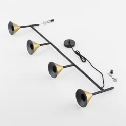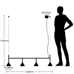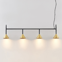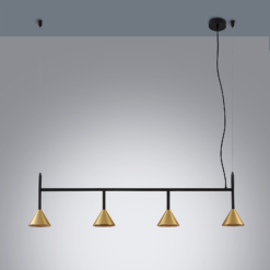 Kartio-riippuvalaisin ihastuttaa geometrisella ja pelkistetyllä muotoilullaan. Valaisimessa on kaksi vaijeriripustinta, joihin kiinnittyy vaakasuora, mattamusta metallitanko, ja neljä varjostinta sijaitsee tangossa tasaisin välein.