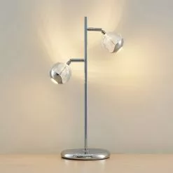 Kaksilamppuinen LED-pöytävalaisin Kilio kiiltävää kromia, himmennettävissä kytkimellä