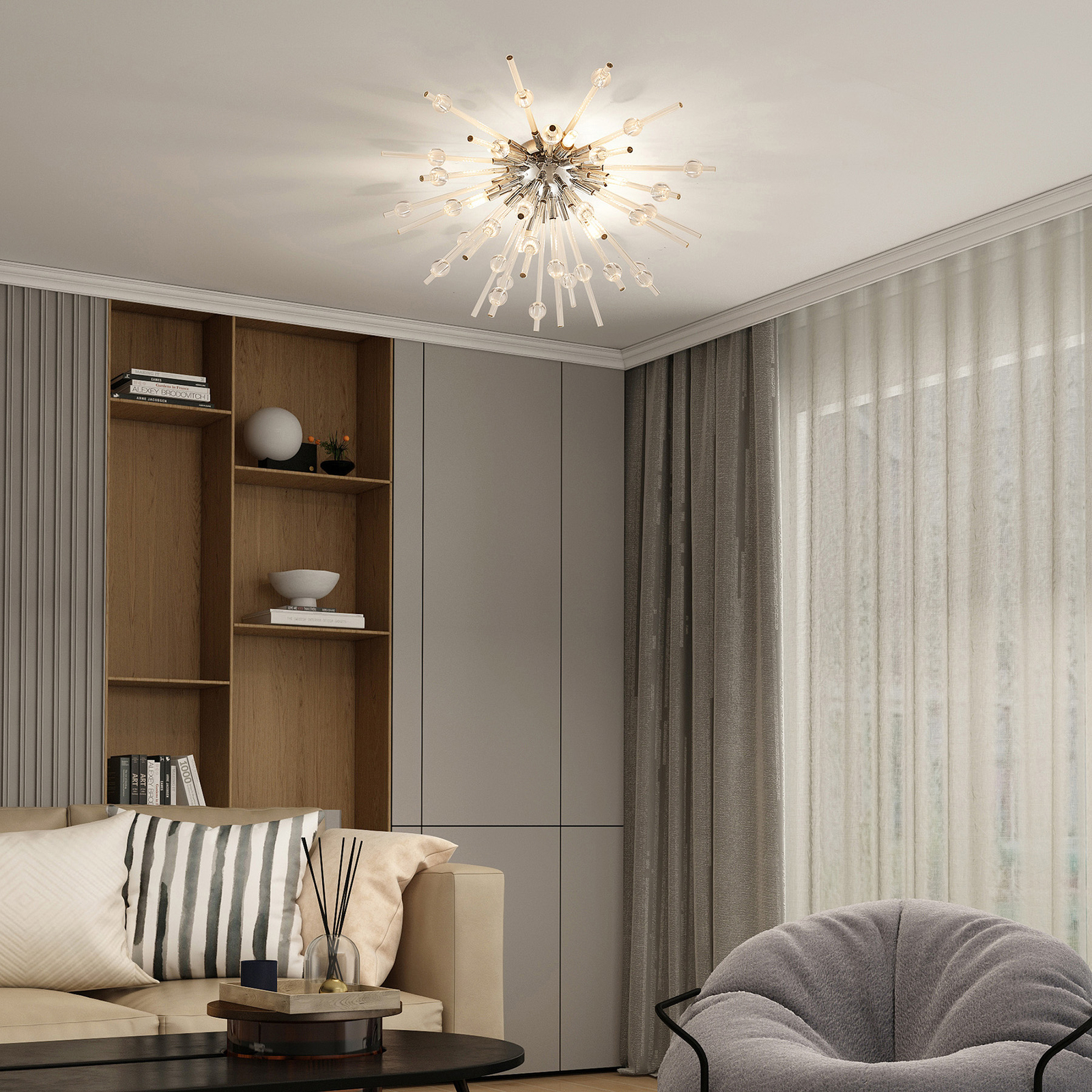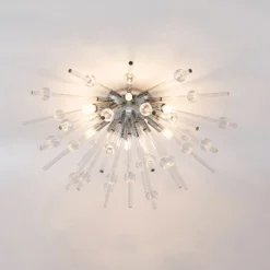 Tämä kaunis kattovalaisin herättää hyvin erityisen ilmeen olohuoneen kattoon . Se pidettiin yksinkertaisessa värikromissa, mutta varjostin houkuttelee kaikkien huomion yksinoikeudella.