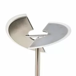 Moderni LED-lattiavalaisin Kohen, jossa on lukuvalo sekä himmennin- ja CCT-toiminto Kohen vakuuttaa modernilla ja näyttävällä muotoilullaan, joka on valmistettu raudasta ja muovista. Sen yläosassa on lampunvarjostin, joka koostuu pyöreästä paneelista, joka on jaettu kahteen osaan. Nämä kaksi elementtiä ovat siirrettävissä, joten valonsäde voidaan kohdistaa joustavasti. LED-lattiavalaisin Kohen on himmennettävissä sen tangossa olevan kytkimen avulla, ja sen valon väri vaihtuu portaattomasti lämpimän valkoisesta päivänvaloon. Se sopii erinomaisesti olohuoneeseen ja on täydellinen kumppani, kun haluat lukea kirjoja sohvalla iltaisin.
