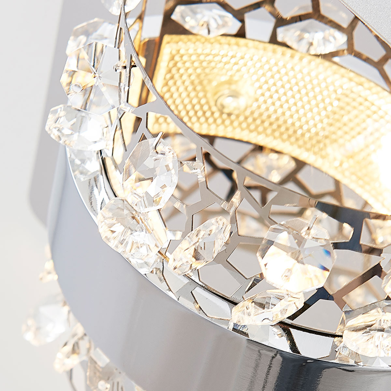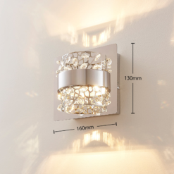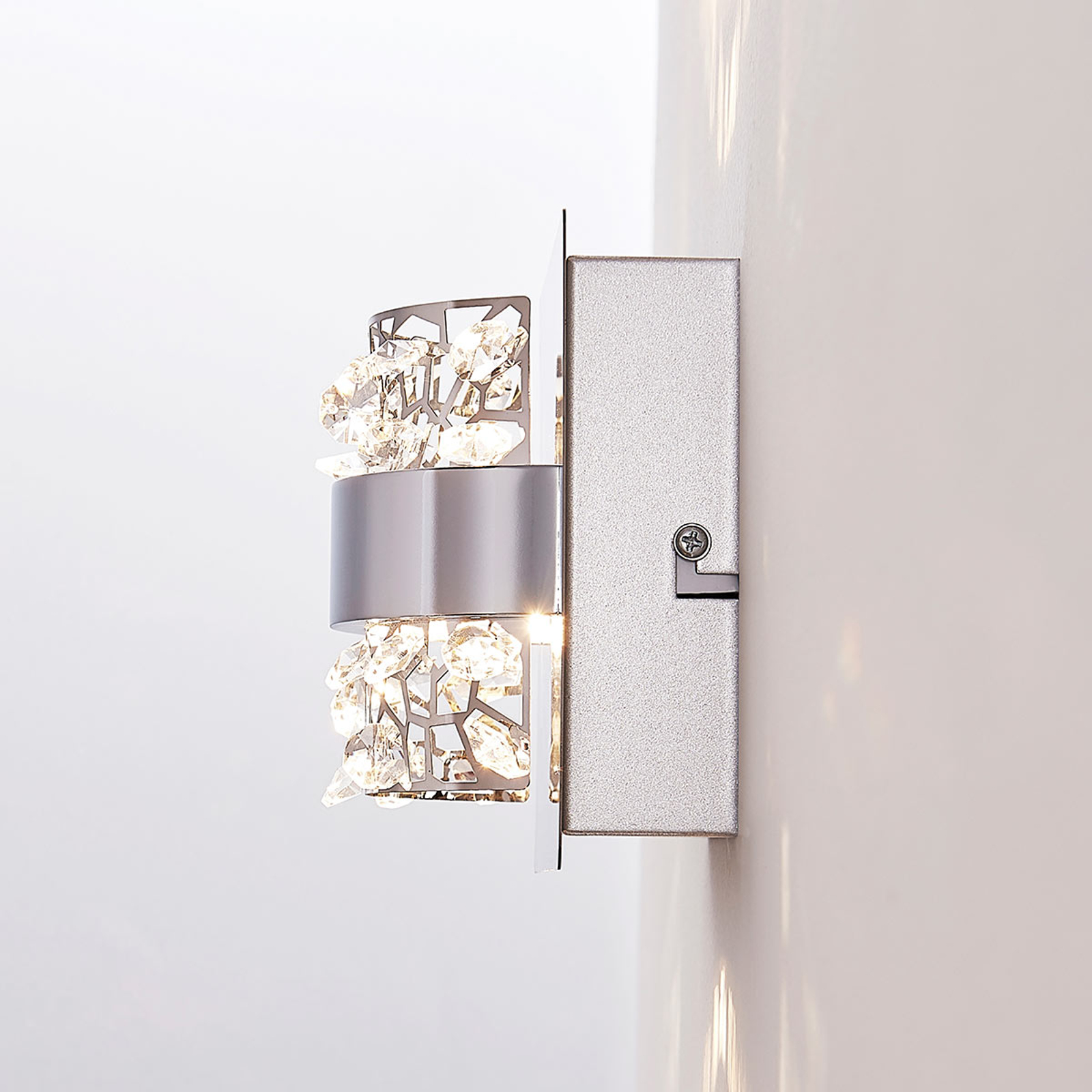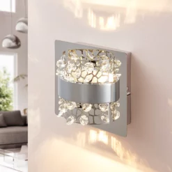 Neelie vaikuttaa samalla modernilta ja loistokkaalta ja täydentää olohuonetta erittäin kauniilla tavalla. Seinälampun metallirunko on varustettu kiiltävän kromatulla pinnnalla, joka pitää huolen kauniista heijastuksesta, ja hiotut pikku kivet saavat aikaan upean kimalluksen, koska valo heijastuu niin usein. Sen johdosta olohuoneeseen syntyy erityinen tyylikkyys, joka pitää huolen ihailevista katseista ja saa huoneen näyttämään ylhäisemmältä.