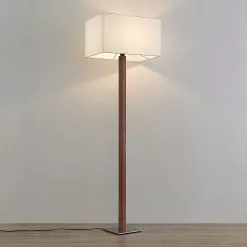 Larkira vakuuttaa ajattomalla muotoilullaan, ja se sopii hyvin moneen sisustukseen. Sen kankainen lampunvarjostin on valkoinen ja kulmikas, ja metallijalusta ja tummasta tammesta valmistettu tanko viimeistelevät ulkonäön. Puuelementti lisää luonnollisuutta ilmeeseen, ja pistorasian ulottuvilla on kytkin, jota voidaan käyttää nopeasti ja kätevästi. Valkoinen kangasvarjostin antaa valon kuvaan paljon pehmeyttä ja tekee Larkira-lattiavalaisimesta valonlähteen, joka osaa luoda erityisen kodikkaan valon.
