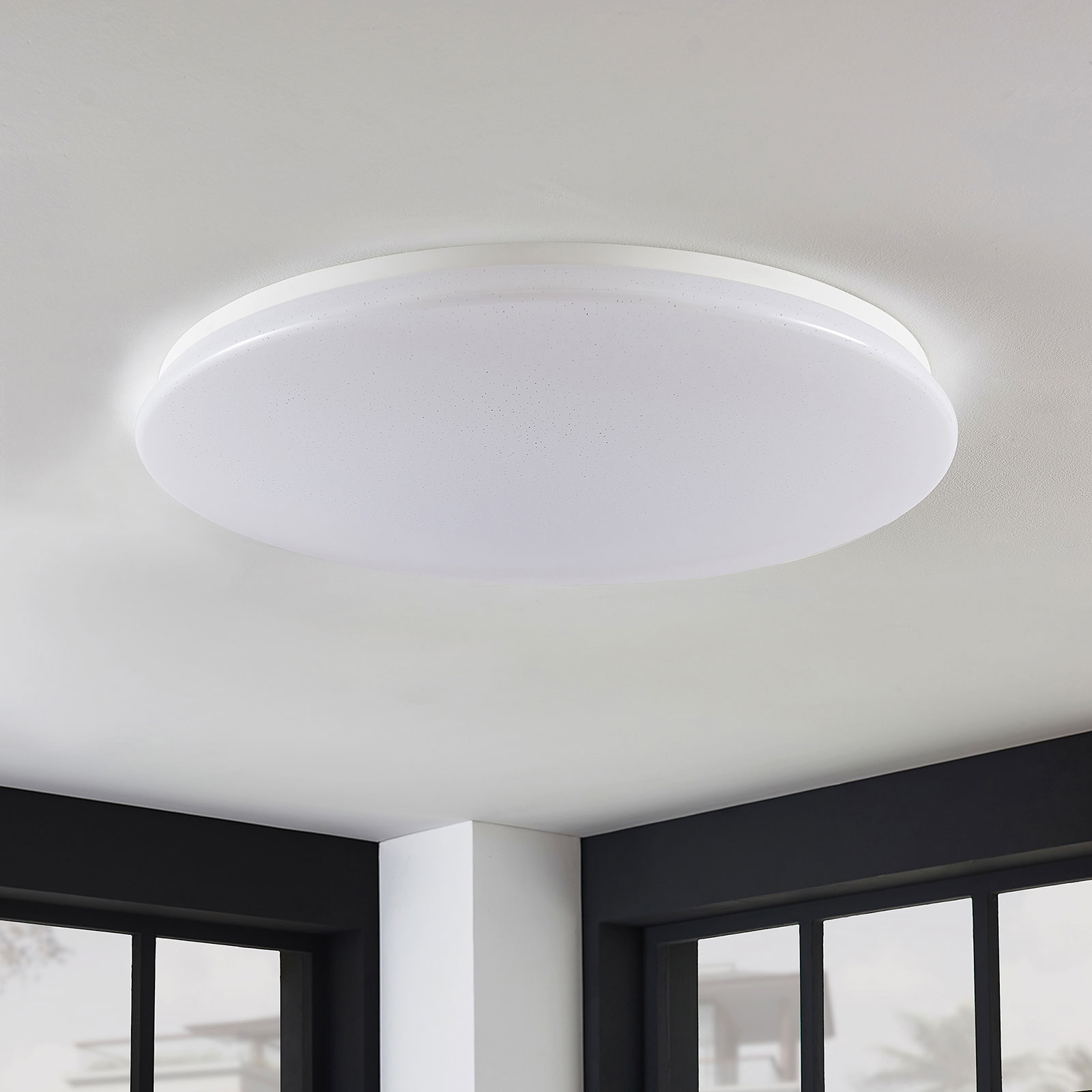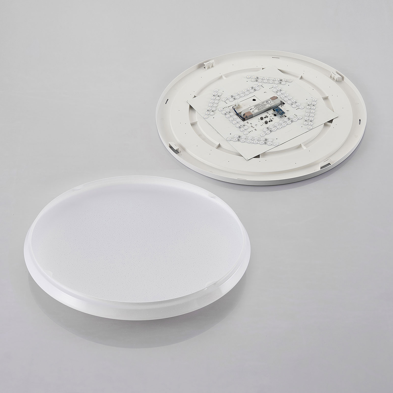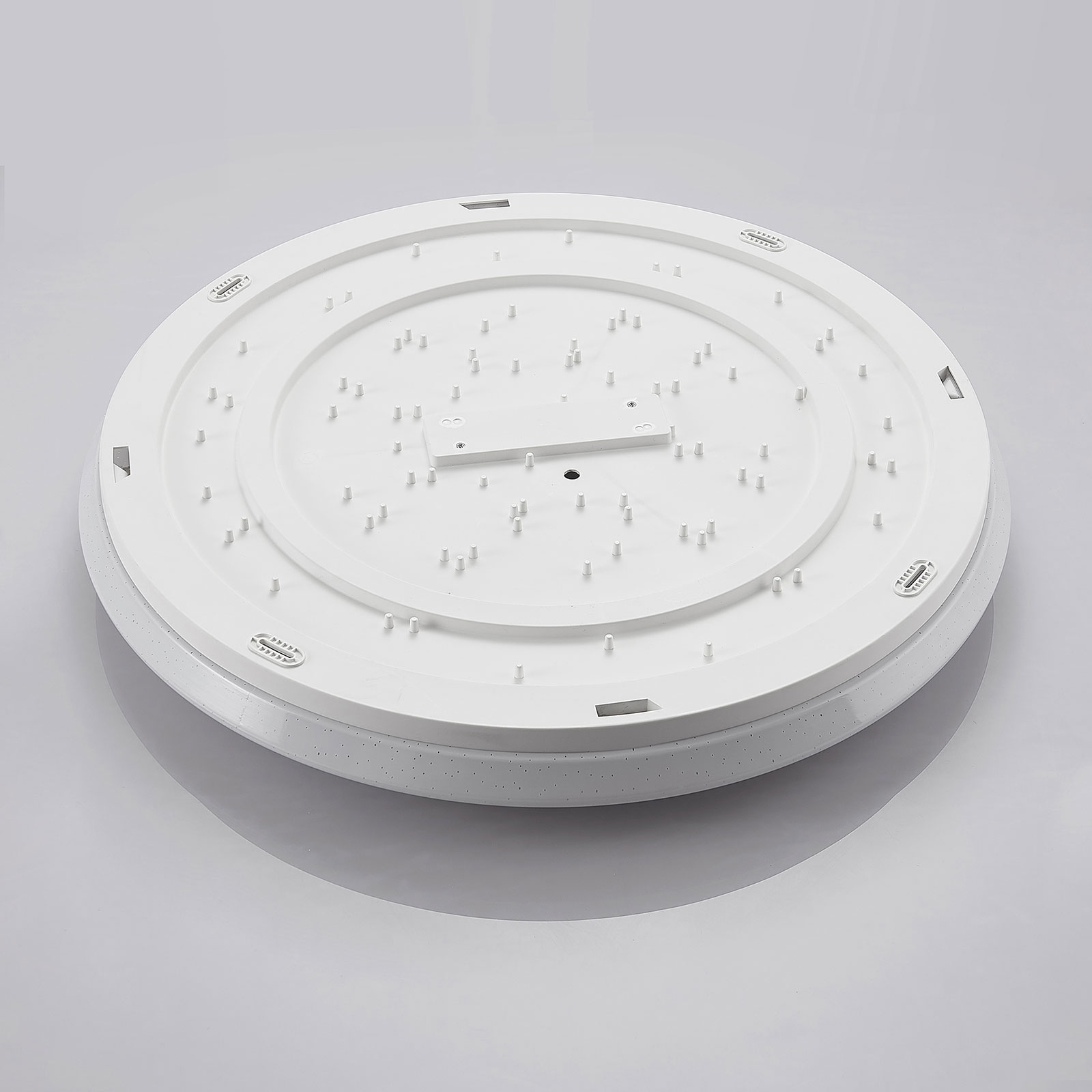 Lisäksi LED-kattovalaisin tuottaa huipputason LED-tekniikkaa, joka paitsi mahdollistaa värikkäät vaaleat värit, myös mahdollistaa valkoisen eri sävyjen vaihtelun lämpimästä valkoisesta yleiseen valkoiseen päivänvaloon. Tällä tavalla voit myös luoda valon, joka sopii ihanteellisesti työhön, ja vaihtoehtoisesti tarjota kodikas valaistus lämpimällä nuotilla illalla. LEDien valoteho on erittäin korkea, mutta se voidaan myös himmentää.