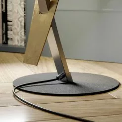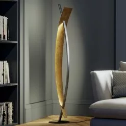 Pyöreän jalustan keskelle asennettu kullanvärinen putki ledeineen kaareutuu pehmeästi eteenpäin. Tähän on yhdistetty musta metallivarjostin, joka on niin ikään kaareutuva. Se saa aikaan näyttävän rustiikkisen tunnelman. Varjostimen takaosa on kullanvärinen. LED-lattiavalaisin Marija kääntää katseita kaikkina vuorokaudenaikoina. Suurimman vaikutuksen se tekee kuitenkin valon ollessa päällä, sillä sen lämmin valkoinen valo ei ainoastaan valaise tilaa, vaan se kääntää katsojan huomion taidokkaasti muotoiltuun valaisimeen. Kapea lattiavalaisin Marija on ihanteellinen huoneen nurkkaan tai istuinryhmän välittömään läheisyyteen.