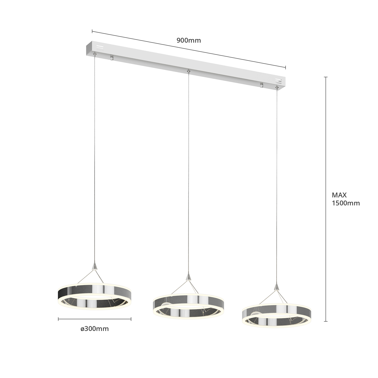 Lucande LED-riippuvalaisin Lyani, 3 Rengasta Vierekkäin