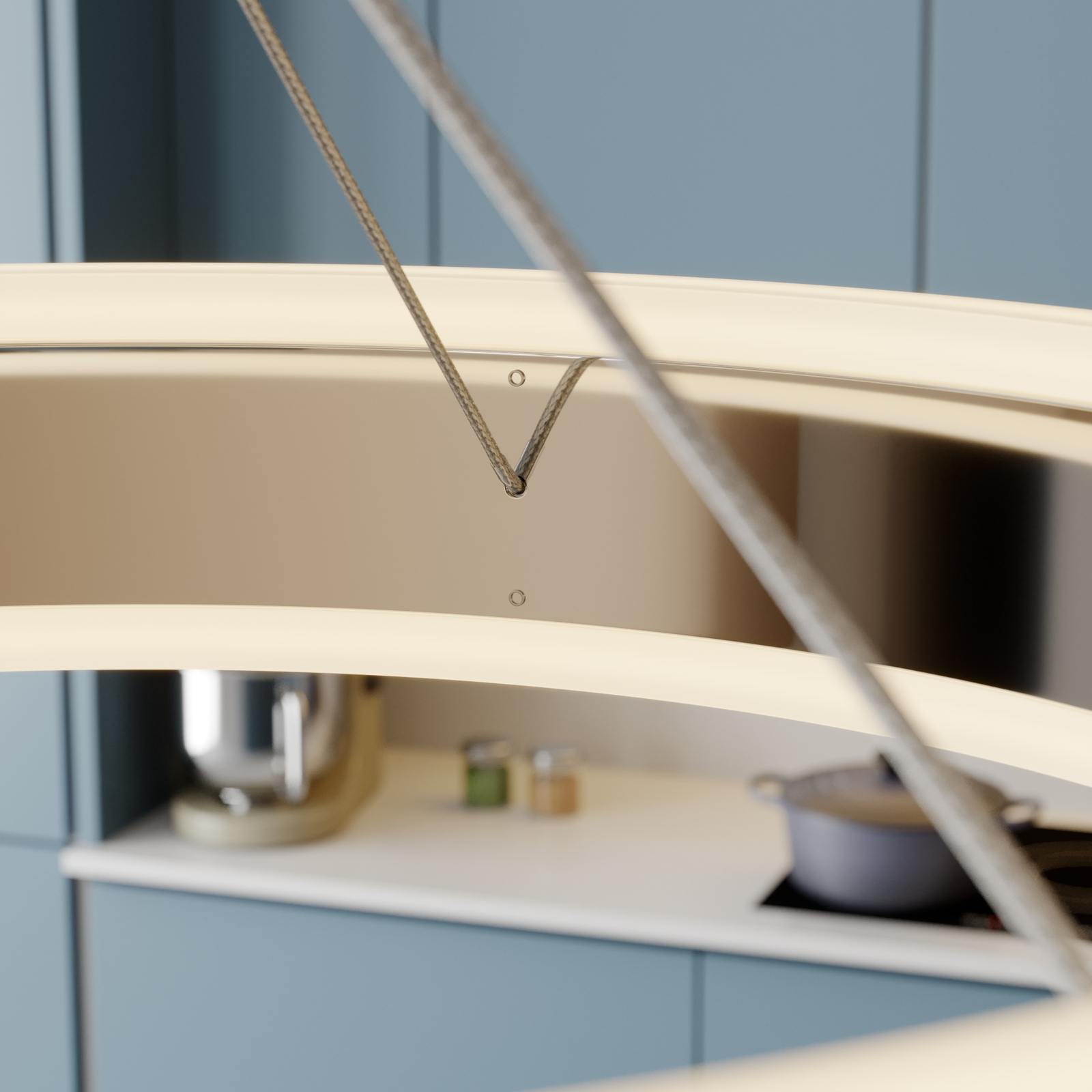Kolme kromatusta metallista valmistettua rengasta ovat LED-riippuvalaisin Lyanin pääosassa. Yhdessä ne saavat aikaan kirkkaan valaistuksen, mutta niiden kirkkautta on kuitenkin mahdollista säätää kolmiportaisesti, jolloin valosta tulee entistä miellyttävämpi. Tätä toimintoa ohjataan tavallisen seinäkytkimen kautta. Kromipinta ja renkaanmuotoiset varjostimet antavat LED-riippuvalaisimelle erittäin modernin ilmeen.