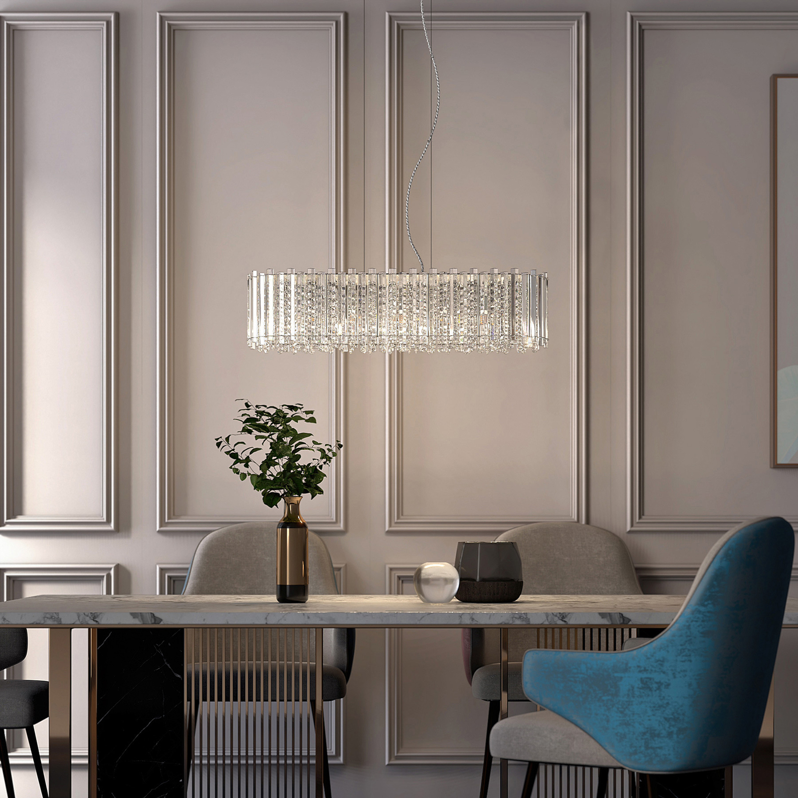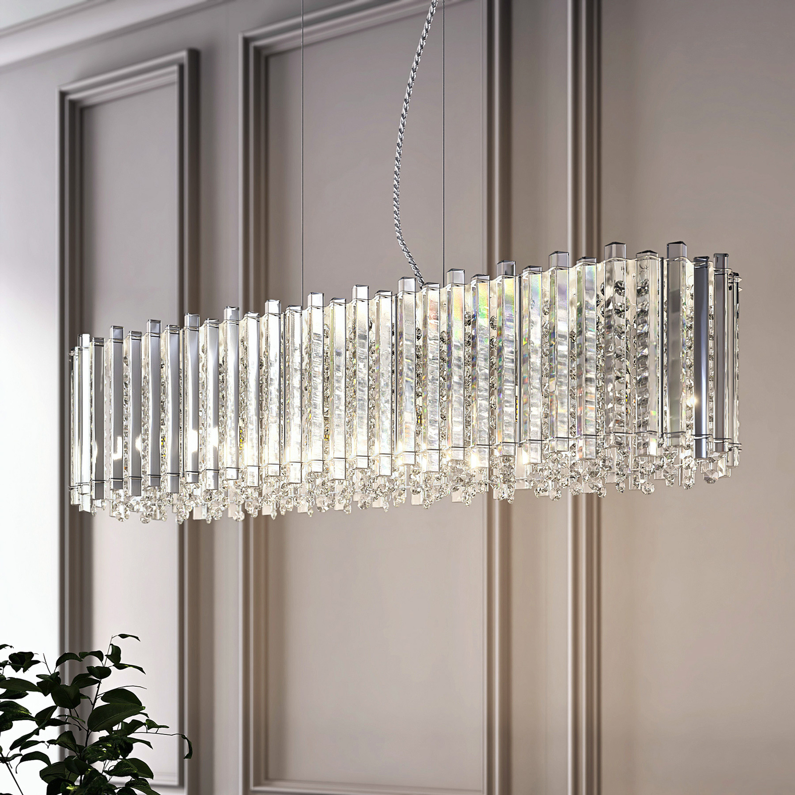 Tämä koostuu filigraanikiteestä ja luo yksilöllisiä valokohteita kattoon ja seiniin. Tämä riippuvalaisin on erityisen sopiva käytettäväksi ruokapöydän tai tiskin yläpuolella, ja kuuden valonlähteen ansiosta se voi myös valaista suurempia alueita. Limana voi myös leikata hienoa lukua hotelli- ja ravintola-alalla.