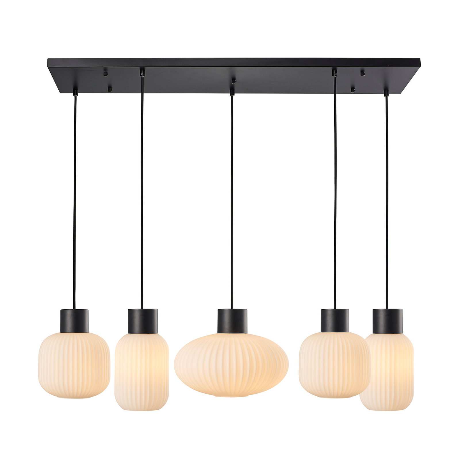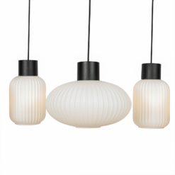 Lomeris vakuuttaa kauniilla ulkonäöllään ja viihtyisällä valaistusteholla, ja se on loistava valaistus olohuoneen tai keittiön ruokapöydälle. Riippuvalaisimessa on pitkä muoto, ja siinä on yhteensä viisi valkoista opaalilasivarjostinta, jotka on muotoiltu kolmeen eri muotoon. Jotkut ovat kapeita ja korkeita, toiset melko leveitä ja sipulimaisia, mutta kaikilla on pyöreä perusmuoto, ja ne näyttävät erityisen tyylikkäiltä, kun niissä on uritettu lampunvarjostin. Valokuvio on pehmeä, tasainen ja viihtyisä valkoisen pinnan ansiosta, joten voit ruokailla mukavasti riippuvalaisimen valossa ja luoda paikan, jossa voit rentoutua ja nojata, mikä sopii hyvin perhekokouksiin ja tekee myös jokaisesta ystävien tapaamisesta mukavan tapahtuman