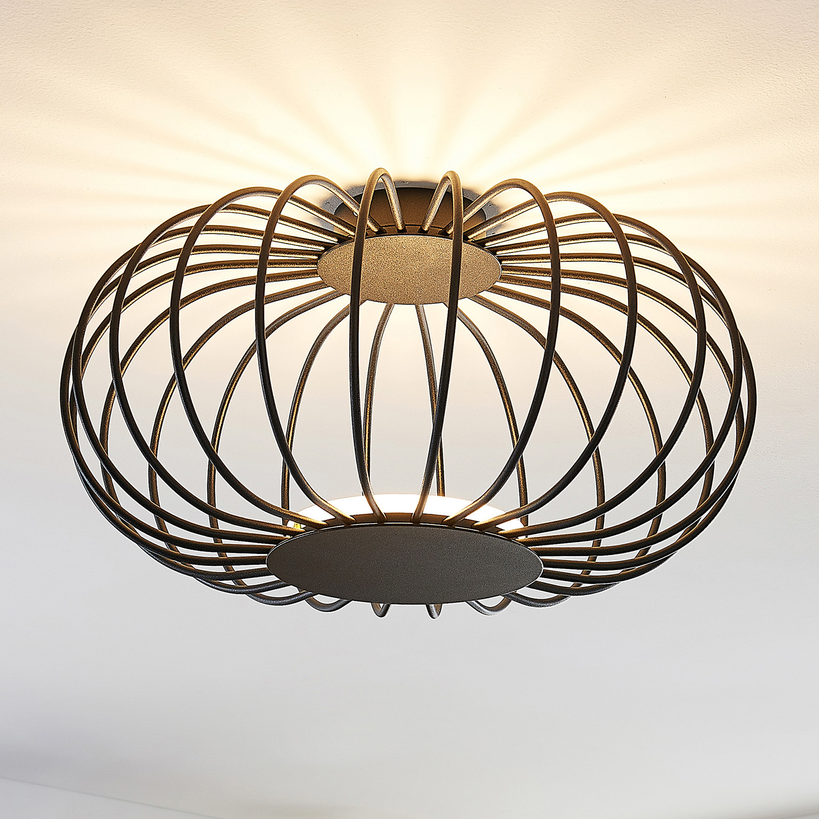 Lusine sopii kaikenlaisiin nykyaikaisiin ympäristöihin, mutta se voidaan helposti integroida myös vintagetyyliin häkkimäisen varjostimensa avulla. Varjostin on tyylikästä mustapintaista metallia ja sen ohuet nauhat on työstetty hienostuneesti. LED-valonlähde loistaa valaisimen alaosasta epäsuorasti miellyttävän lämmintä valkoista valoa, minkä vuoksi Lusine-kattovalaisin sopii hyvin huolehtimaan oleskelutilojen mukavasta tunnelmasta, mutta on aina tervetullut makuuhuoneisiinkin.