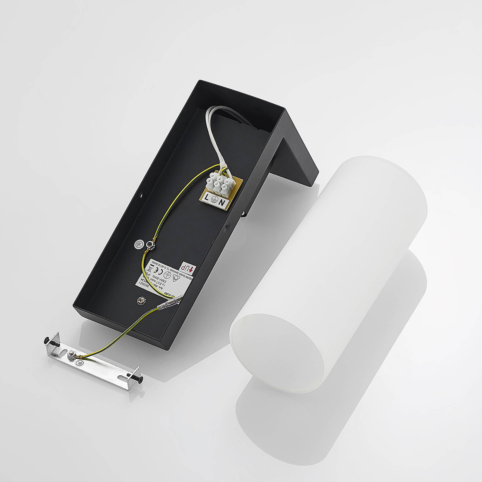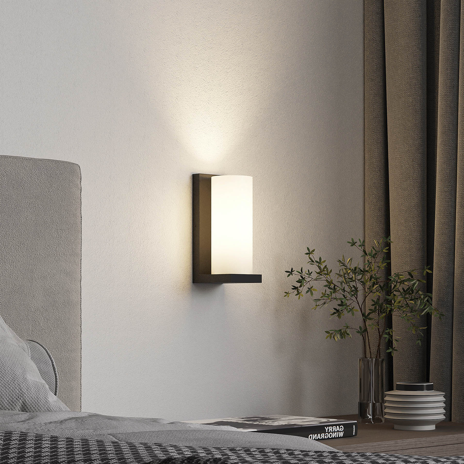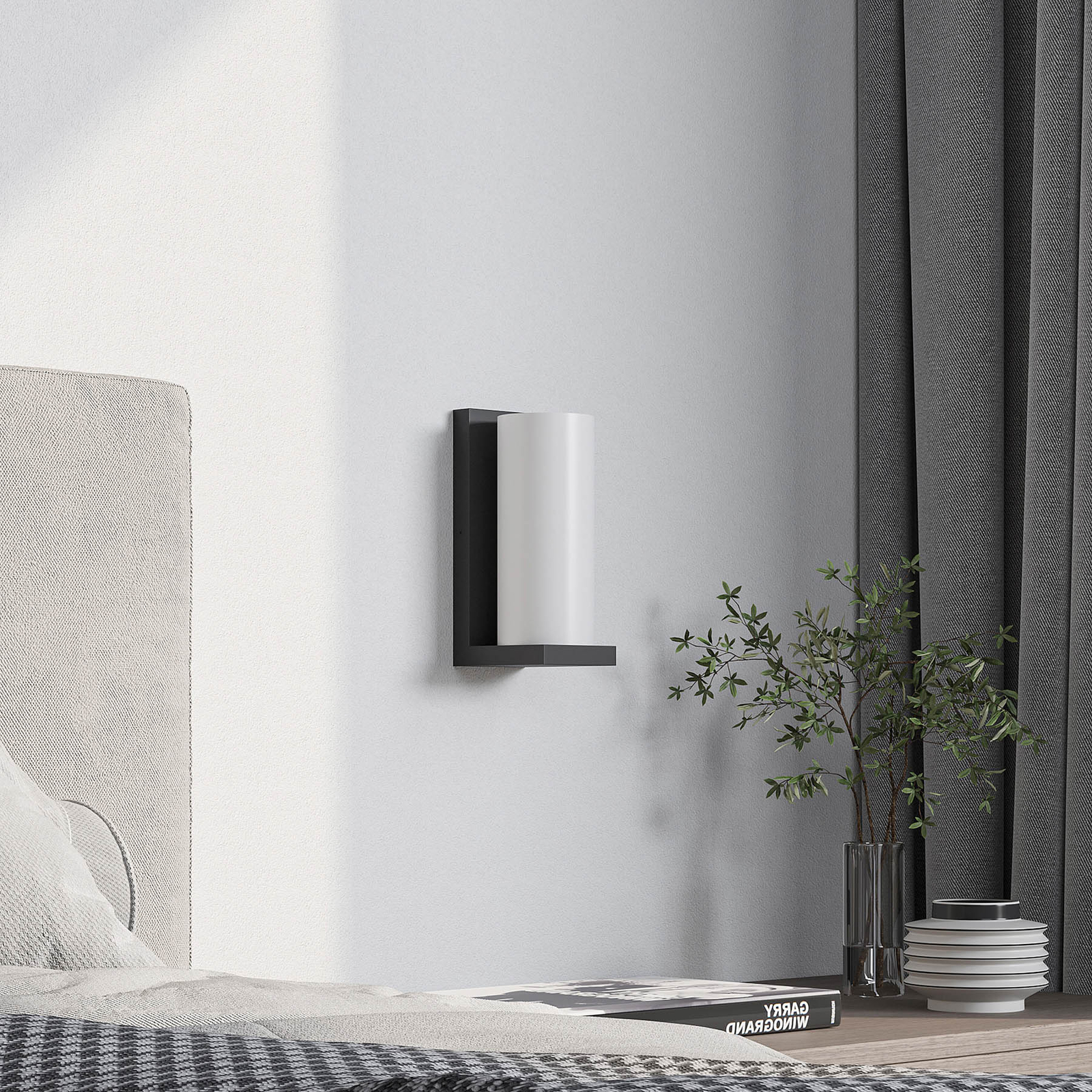 Lyra yhdistää pyöreän sylinterimäisen valkoisen lasin sävyn neliönmuotoisen mustan seinäkiinnikkeen kanssa ja tuo siten kauniit kontrastit yhteen muotoon. Valkoinen lasi aiheuttaa valon pehmeän jakautumisen, ja seinävalaisin on tervetullut kaikkialla asuinalueella kauniina korostusvalaistuksena, ja se voi myös palvella hyvin käytävillä tuottamalla mukavan ja häikäisemättömän valon, joka näyttää pehmeältä ja kodikkaalta.