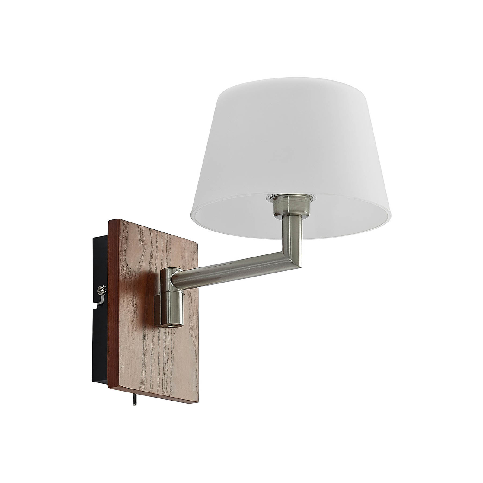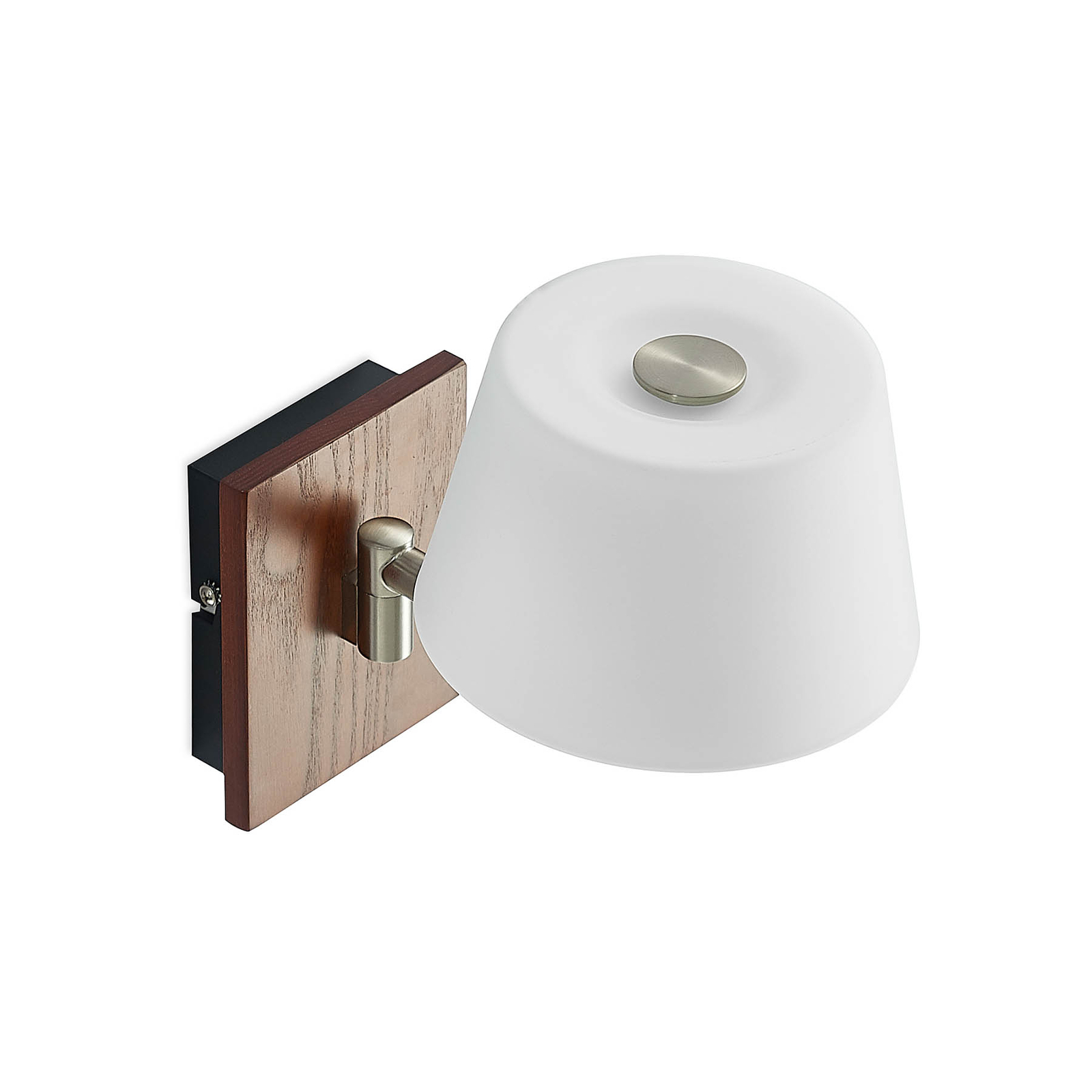 Maditalla on klassisempi ilme ja se voidaan sijoittaa helposti sängyn tai sohvan ulottuville. varjostin voidaan vetää ylös tai kääntää pois, ja sen valkoinen pinta antaa mukavan, pehmeän valaistus. Metallielementti on valmistettu satinoidusta nikkelistä ja kolmikomponenttinen ilme antaa seinävalaisimelle yksilöllisen ilmeen.