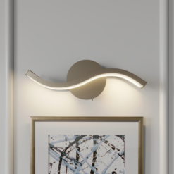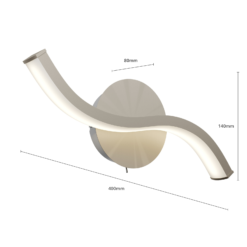 Moderni LED-seinävalaisin Mairia tekee vaikutuksen upealla muotoilullaan ja kauniilla muodoillaan. LEDit kiinnitettiin aaltoilevan elementin alapuolelle. Pyöristetyn muodonsa ansiosta aallolla on rauhoittava vaikutus ja se antaa lampulle yksilöllisyyden. Tätä muotoilukonseptia täydentää seinäkiinnike, joka pyöreän muodonsa ansiosta varmistaa visuaalisesti tasapainoisen ja harmonisen kuvan.