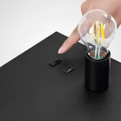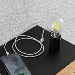Malvina on täysin musta ja vähäisillä yksityiskohdilla varustettu valaisin, jossa valonlähteellä on suuri läsnäolo. Siksi se tulisi valita optisesti mahdollisimman sopivasti ja mieluiten energiaa säästävä LED-tekniikka. Se ei ole tavanomainen runko, jonka näet täällä, vaan pikemminkin hylly, johon pidin on kiinnitetty. Koska Malvina-seinävalaisin on varustettu myös USB-liitännällä (5 V, 2 A), sen ominaisuuksiensa ansiosta se on ihanteellinen älypuhelimen varastointiin ja lataamiseen samanaikaisesti, jotta sitä voidaan käyttää uudelleen seuraavan kerran lähtiessäsi talo saa pisteitä täysin ladatulla akulla, ja voit käyttää matkapuhelimen arvokkaita toimintoja milloin tahansa.
