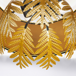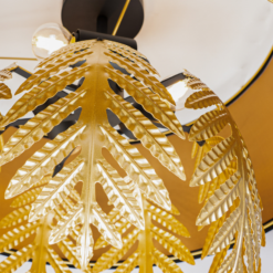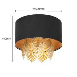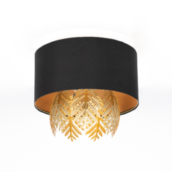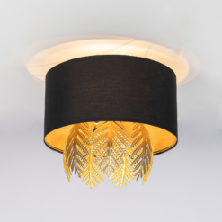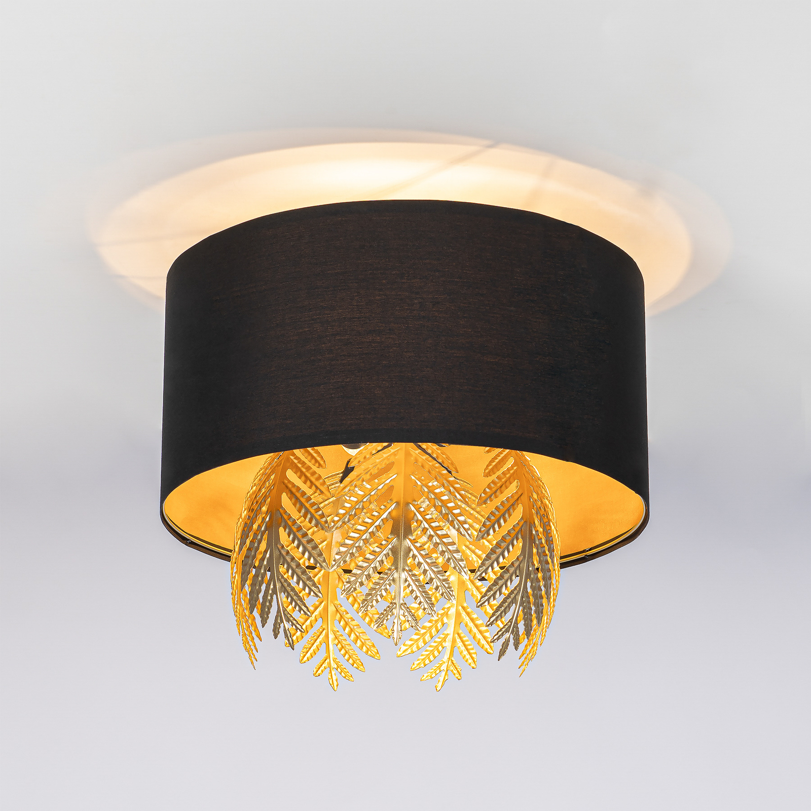 Malviras on kaunis tekstiilivalaisin kattoon, jossa on pyöreä muoto. Sylinterimäisen varjostimen ulkopuoli on pidetty mustana, kun taas sen sisäpuoli loistaa kultaisena ja luo erittäin lämpimän valon. Lisäksi alapuolella on kultaisia koriste-elementtejä, jotka on muotoiltu saniaislehtimäisen näköisiksi ja jotka suojaavat valoa entisestään ja luovat upean valon ja varjon leikin. Lisäksi kullan sävy antaa upean ja näkemisen arvoisen kontrastin, kun se näkyy yhdessä sävyn viileän mustan kanssa. Ainutlaatuinen muotoilu asettaa todella kauniita korostuksia olohuoneeseen ja makuuhuoneeseen ja vakuuttaa upealla valaistuksella!